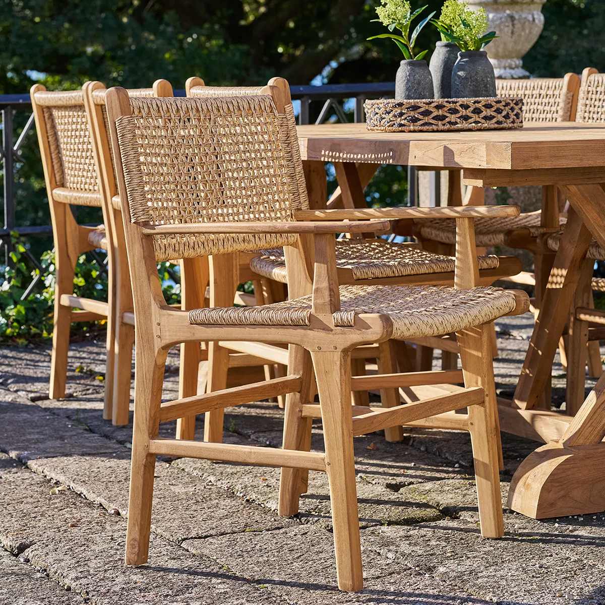 Elodie houten tuinstoel naturel met rotan - met armleuningen