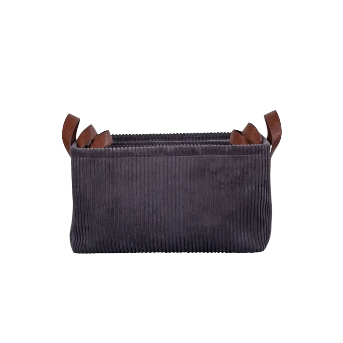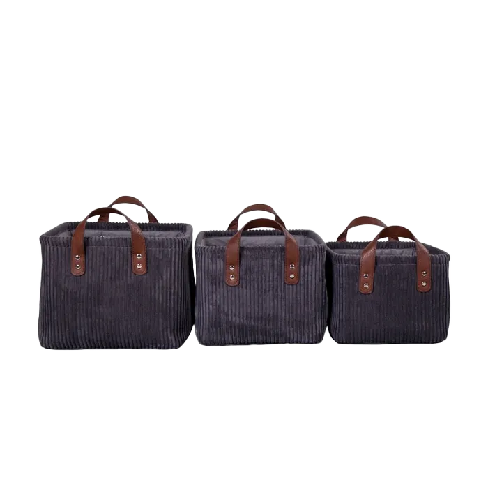 Femke opbergmandjes ribstof grijs - rechthoekig - set van 3
