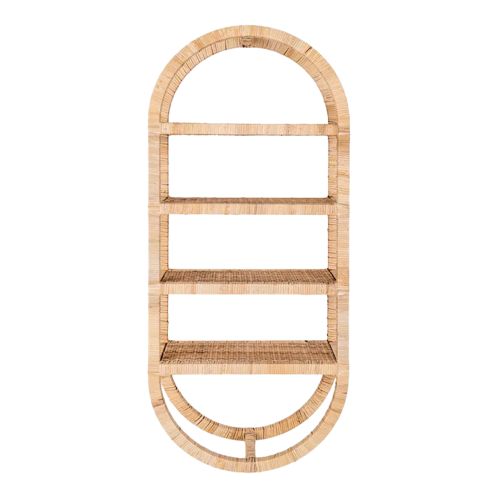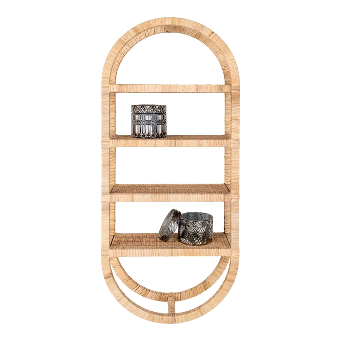 Versier die lege muur in huis met de Jenna wandplank van Artichok. De Jenna wandplank is gemaakt van rattan en heeft daardoor een prachtige natuurlijke uitstraling. De wandplank is 33 cm breed, 13 cm diep en 78 cm hoog. Dit ondiepe ovale wandrek is perfect voor smalle ruimtes zoals de hal en overloop, maar staat ook prachtig aan de muur in de woonkamer. De vier planken kan je gebruiken om leuke accessoires, fotolijstjes en plantjes op te zetten. Omdat de wandplank open is, kan je van alle kanten zien wat er op de planken staan. Voordelen