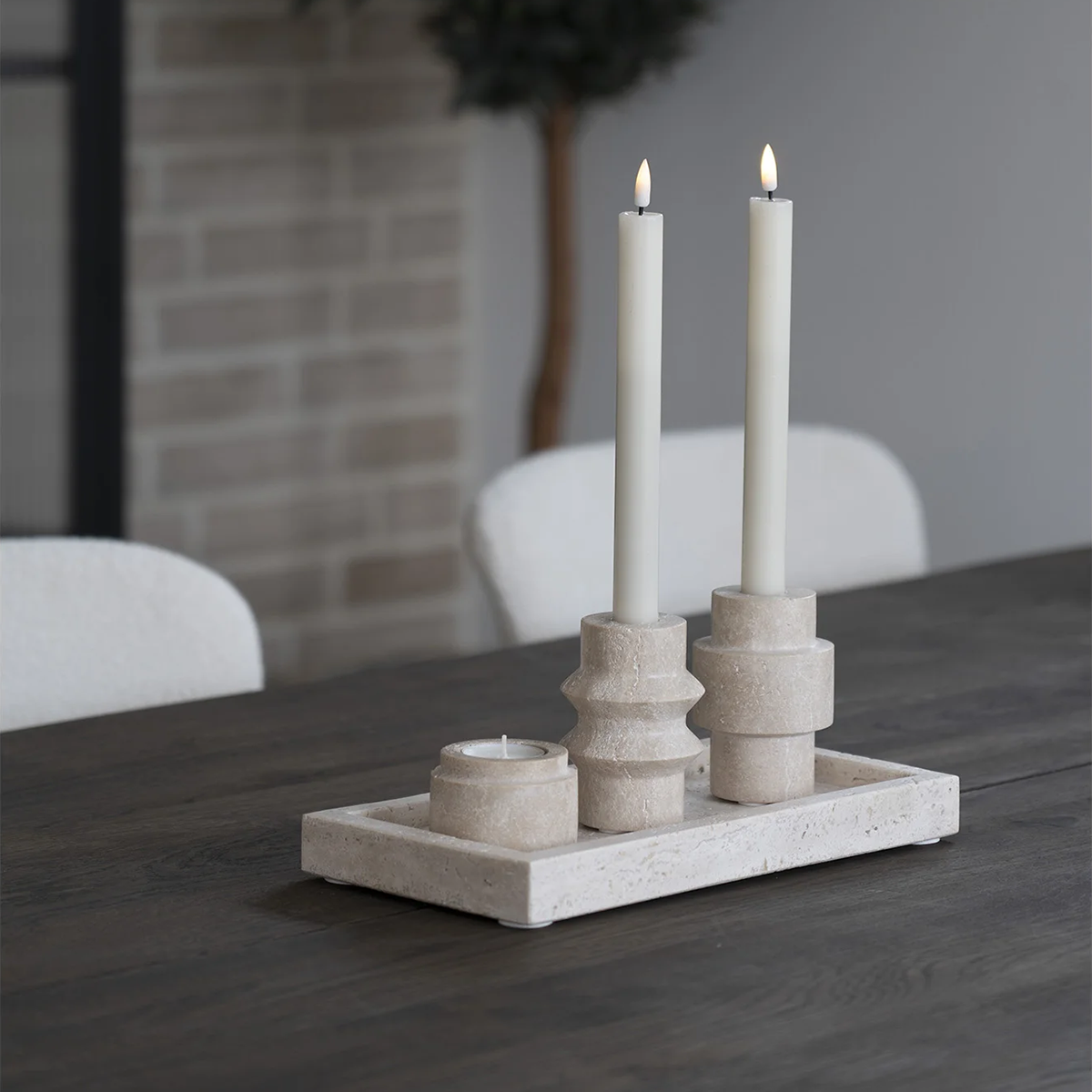Joah travertijn kaarsenhouder naturel - set van 2