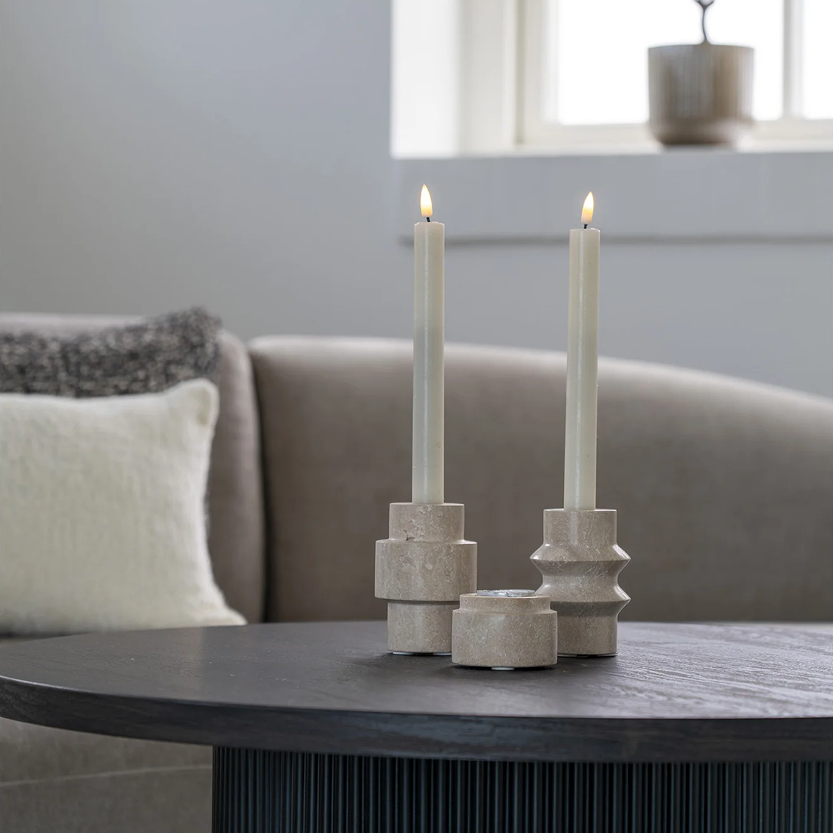 Breng de sfeer terug in huis met de kaarsenhouder Joah van Artichok. Deze prachtige kaarsenhouder is gemaakt van travertijn en heeft een natuurlijke kleur, waardoor hij uitstekend te combineren is met andere accessoires in je huis. De kaarsenhouder is volledig uniek, omdat hij met de hand is gemaakt, waardoor geen twee exemplaren 100% identiek zijn. Plaats de kaarsenhouder op de eettafel voor een gezellig diner, op het dressoir als decoratief accent, of op de salontafel voor een warme en uitnodigende sfeer. Combineer met de andere accessoires uit de Joah serie van Artichok voor een stijlvolle eenheid in je interieur. Voordelen en tips
