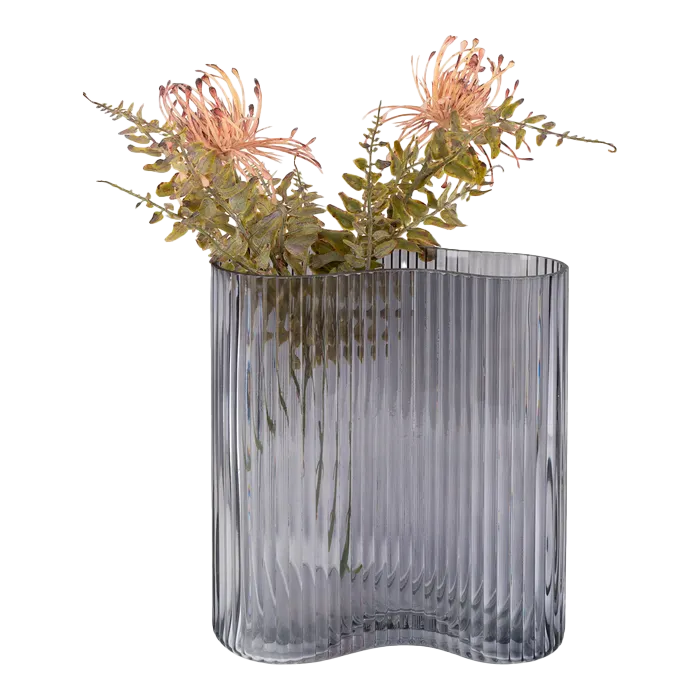 De Loes vaas van Artichok is een geribbelde vaas met een bijzondere vorm. De Loes vaas is gemaakt van glas en heeft een donkergrijze kleur. De asymmetrische, organische vorm en het geribbelde oppervlak zorgen ervoor dat deze vaas net even anders is dan een standaard vaas. Deze vaas is 19 cm breed, 12 cm diep en 20 cm hoog. De Loes vaas springt eruit in je interieur, vooral als je hem met mooie bloemen vult en op tafel zet. Voordelen