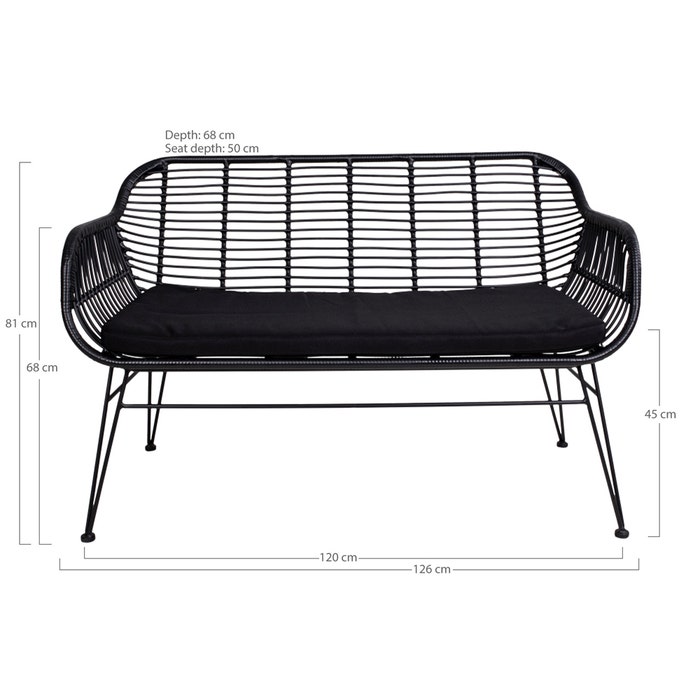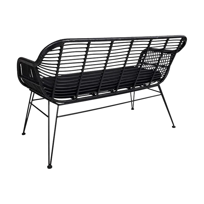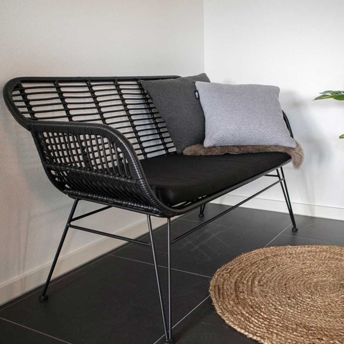 Madelein rotan tuinbank zwart - met zitkussen