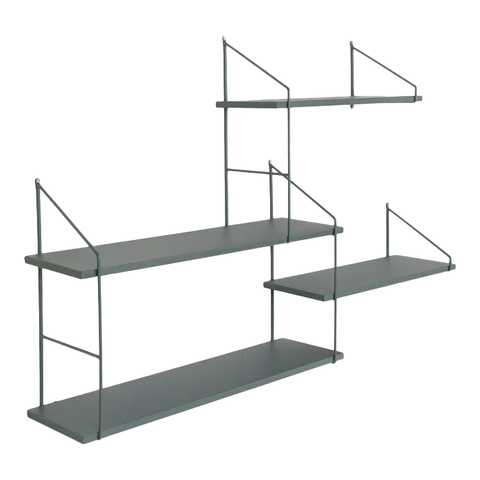 Ga de hoogte in met het Mady houten wandrek van Artichok. Het Mady wandrek heeft een frame gemaakt van staal en de vier planken zijn gemaakt van hout. Zowel het frame als de planken hebben een groene kleur. Het wandrek is 99 cm breed, 17,5 cm diep en 62 cm hoog. Dit asymmetrische wandrek is perfect om een lege muur in huis op te vullen. Doordat de bevestigingspunten in het frame zitten, lijkt het wandrek te zweven. Vul het speelse ontwerp met leuke accessoires, fotolijstjes en planten. Voordelen
