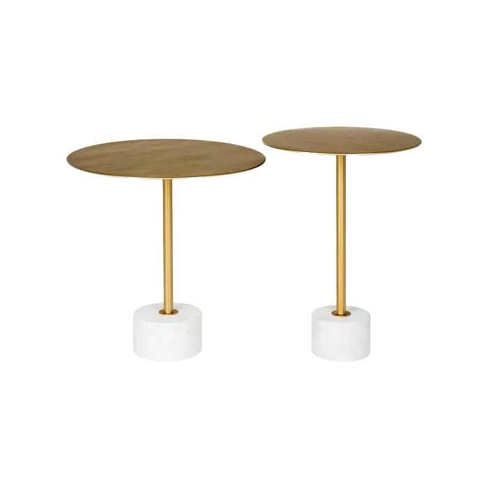 Geef je interieur een chique upgrade met deze ronde bijzettafel Manon van Artichok. Met een tafelblad van goudkleurig metaal en een sierlijke ronde tafelvoet vervaardigd uit luxueus marmer, straalt deze bijzettafel pure elegantie uit. Het tafeltje is niet alleen een handig oppervlak voor je drankje of favoriete boek, maar ook een statement van verfijnde smaak in interieurdesign. De gouden tint van het metalen tafelblad vangt het licht op een betoverende manier, terwijl de marmeren voet een tijdloze klasse toevoegt aan elk vertrek. Dankzij het compacte formaat is deze trendy bijzettafel veelzijdig inzetbaar. Of je hem nu naast je favoriete fauteuil plaatst of als handig tafeltje in de hal, de Manon bijzettafel voegt een vleugje glamour toe aan elke hoek van je huis. Voordelen