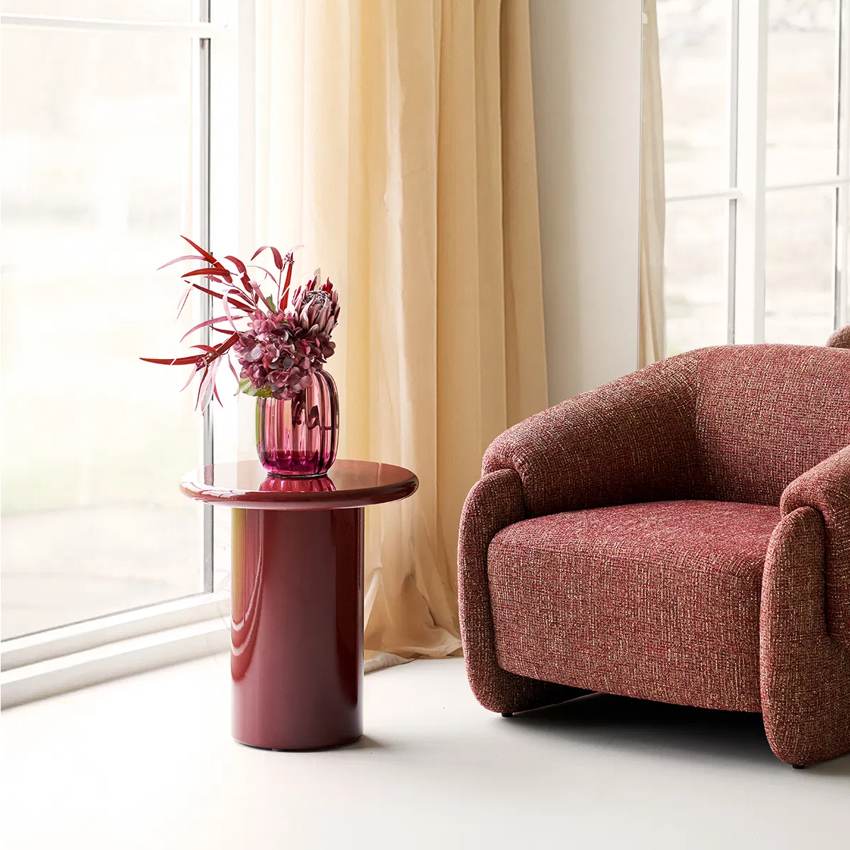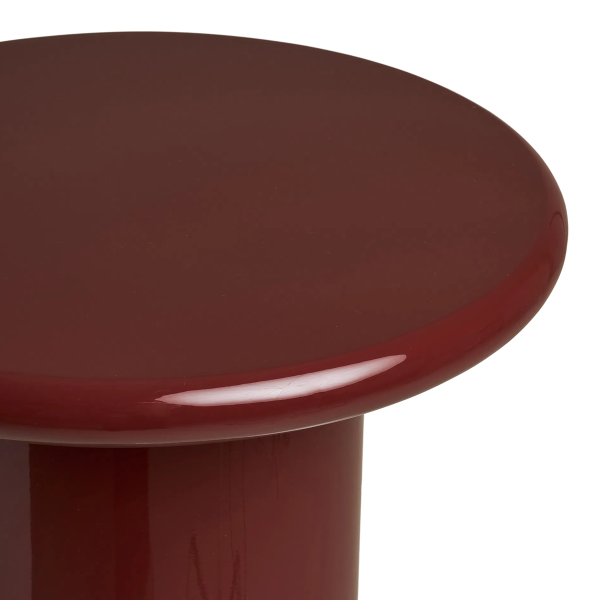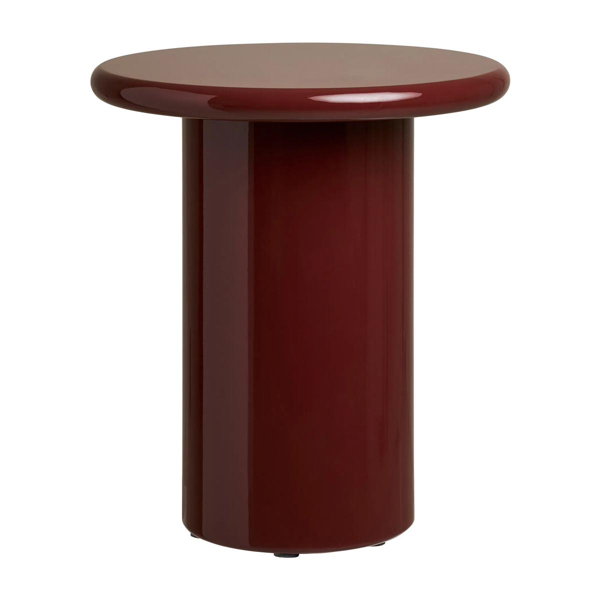 Deze rode bijzettafel is een echte blikvanger met karakter. De diepe bordeauxrode kleur geeft het ontwerp een warme en luxe uitstraling, terwijl de hoogglans lak zorgt voor een stijlvolle, moderne touch. Dankzij de ronde vorm met een diameter van 45 cm en de brede, rechte voet oogt de tafel krachtig en in balans.