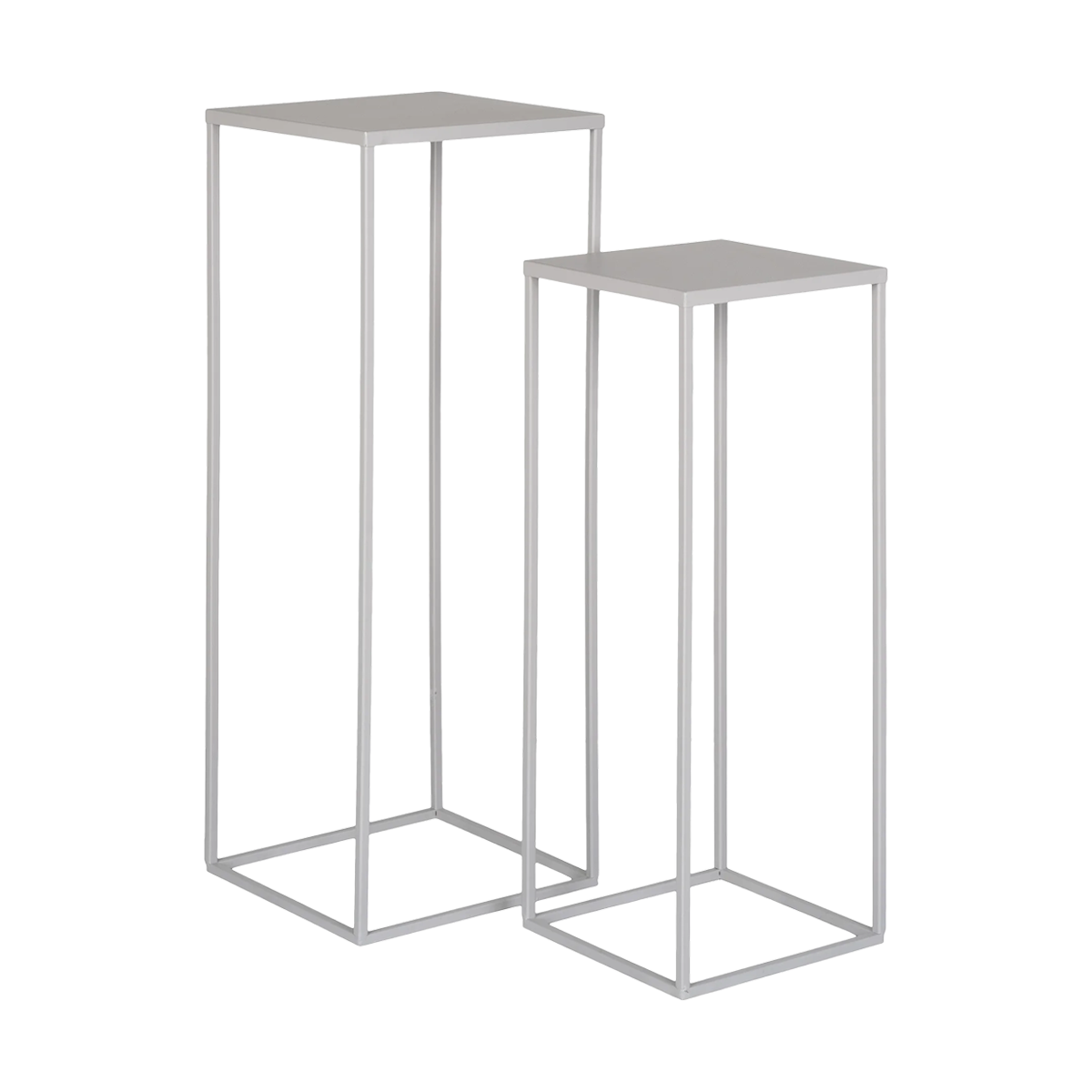 Sebas metalen plantenzuil lichtgrijs - set van 2