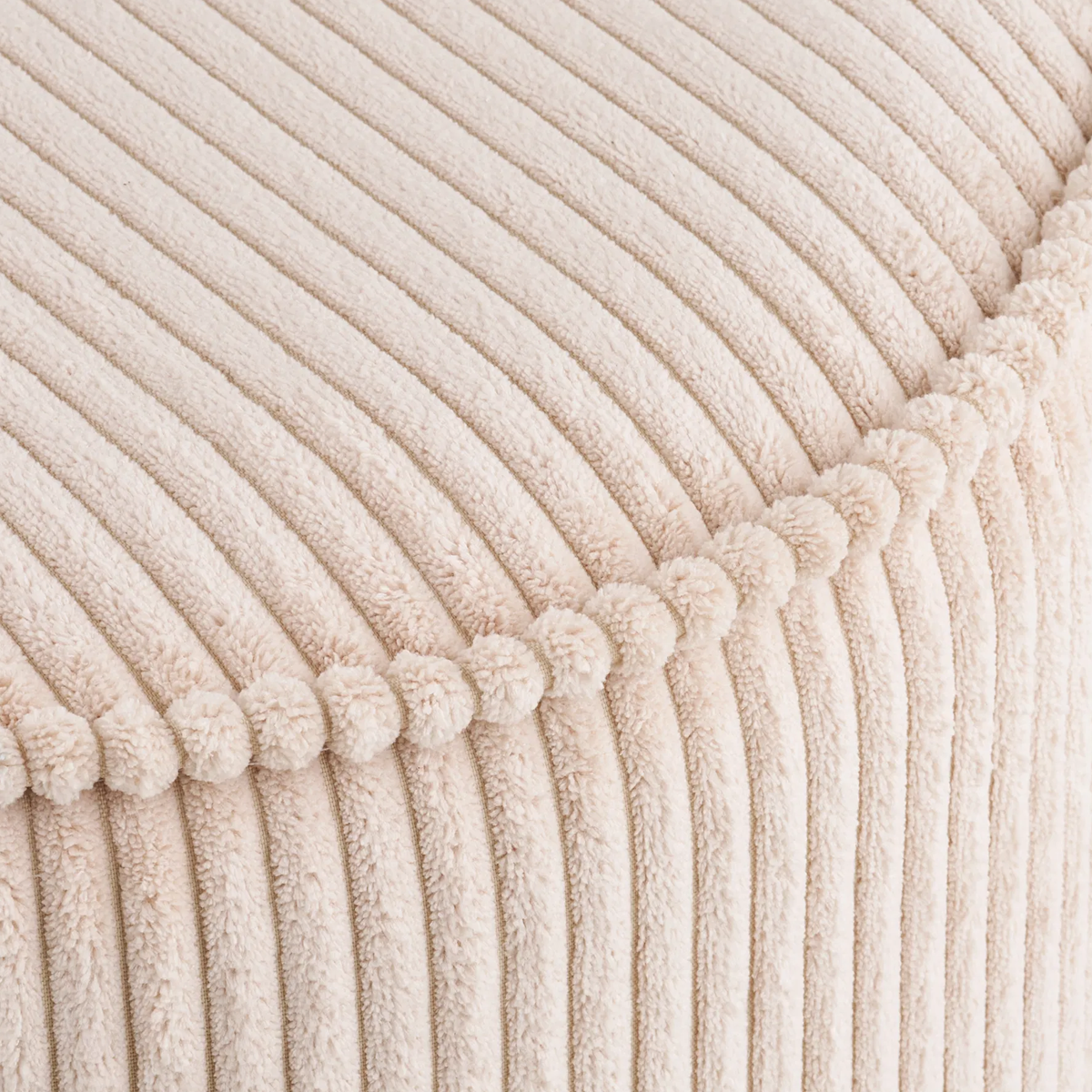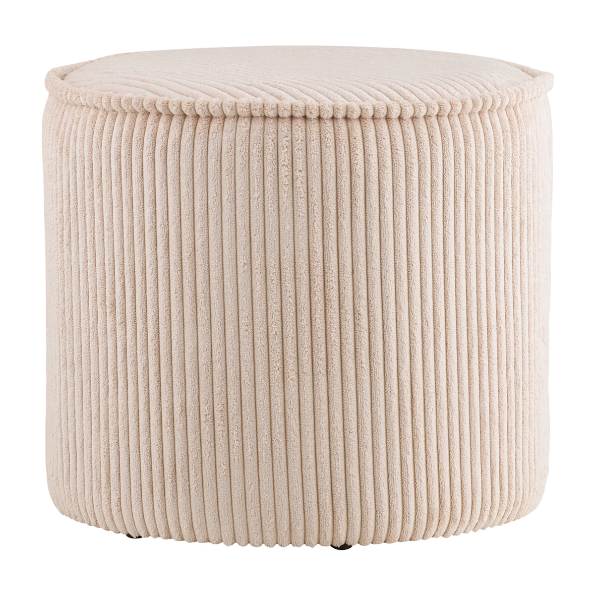 De zachte ribstof geeft het poefje een warme en eigentijdse uitstraling, terwijl het subtiele biesje aan de bovenkant zorgt voor een verfijnde afwerking. Met een diameter van 40 cm en een hoogte van 35 cm heeft het een compact formaat dat makkelijk te verplaatsen is. Ideaal als extra zitplek wanneer je gasten hebt, of als comfortabel voetenbankje om heerlijk te ontspannen. Een sfeervol item dat moeiteloos comfort en uitstraling samenbrengt.