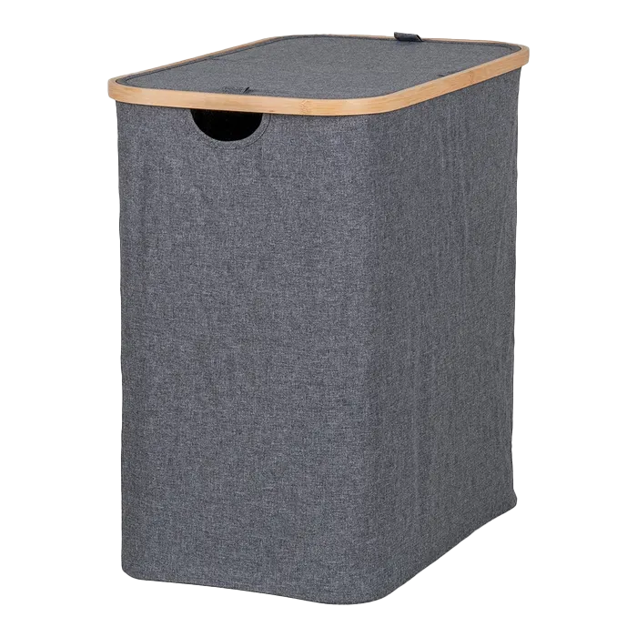 De Wendy wasmand van Artichok is een stoffen wasmand met genoeg ruimte voor al je vuile was. De wasmand is gemaakt van polyester en heeft een donkergrijze gemêleerde kleur. De rechthoekige vorm van de wasmand is afgewerkt met afgeronde hoeken. Aan de bovenzijde zit rondom een bamboe ring en twee kleppen die in het midden bevestigd zitten. De handvaten aan de zijkanten zorgen ervoor dat de Wendy wasmand gemakkelijk op te pakken en te verplaatsen is. Voordelen