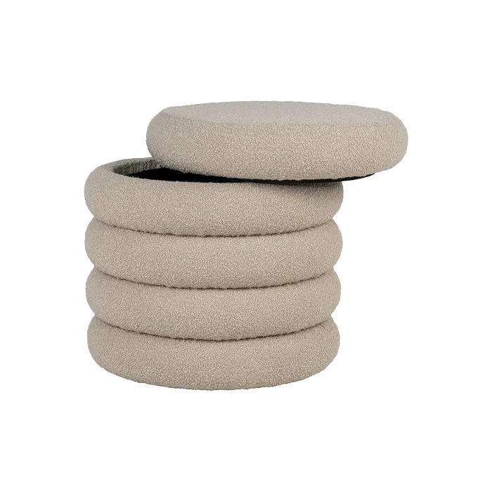 Willemijn poef bouclé beige - met opbergruimte - Ø 44 cm