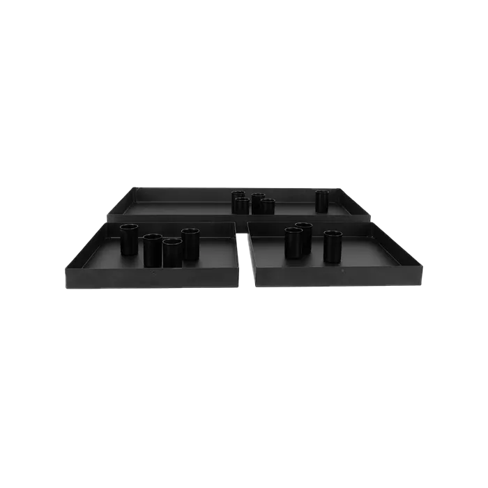 Met de Youri kaarsenhouder set van Artichok breng je sfeer in huis. Deze leuke kaarsenhouder plateau heeft een unieke uitstraling en is op verschillende manieren te gebruiken, zet ze alle drie bij elkaar of gebruik ze los van elkaar. Deze kaarsenhouder set bestaat uit drie metalen plateaus en heeft twaalf metalen kandelaarhouders. Doordat er magneten in de kaarsenhouders zitten, weet je zeker dat ze blijven staan! Verdeel de kaarsenhouders over de plateaus en zet deze plateaus neer waar jij ze op dat moment wilt hebben. De houders zijn alleen geschikt voor lange dinerkaarsen. Wil je nog meer sfeer creëren, voeg dan een paar losse waxinelichtjes toe op de plateaus. Voordelen