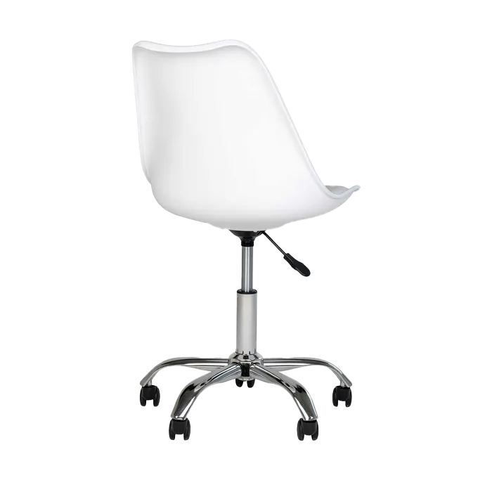 De bureaustoel Mieke van Essence maakt thuiswerken extra comfortabel. De kuip heeft een vast kunstleren zitkussen en is gevoerd met zachtschuim. De rugleuning vormt mooi met je rug mee en zorgt voor een actieve werkhouding. Het onderstel is van metaal, heeft vijf wielen en is door het gebruiken van de hendel in hoogte verstelbaar. Kortom, een comfortabele bureaustoel in een trendy jasje. Voordelen