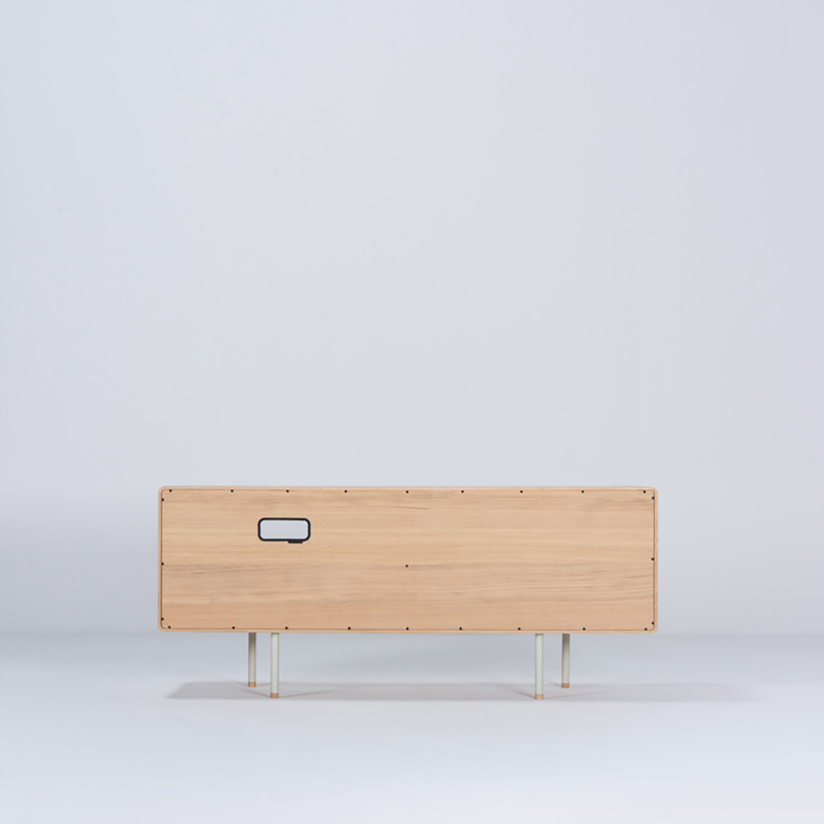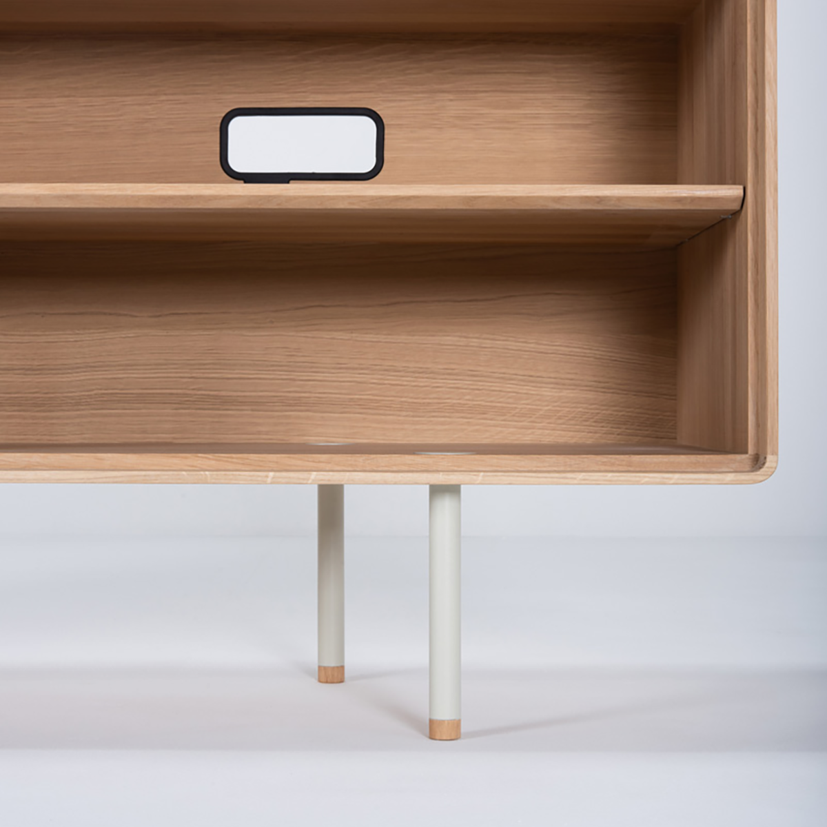 Het Fina sideboard van Gazzda is multifuctioneel. Je kunt dit moderne dressoir gebruiken als ieder ander dressoir maar het is ook mogelijk om dit dressoir in te zetten als Tv-meubel. Het kabelgat in de achterwand zorgt ervoor dat je met gemak alle kabels netjes wegwerkt. Alle televisieaccessoires en andere spulletjes kun je opbergen in de twee lades en in het onderste open vak. De lades zijn bekleed met linoleum voor een modern uiterlijk. Voordelen