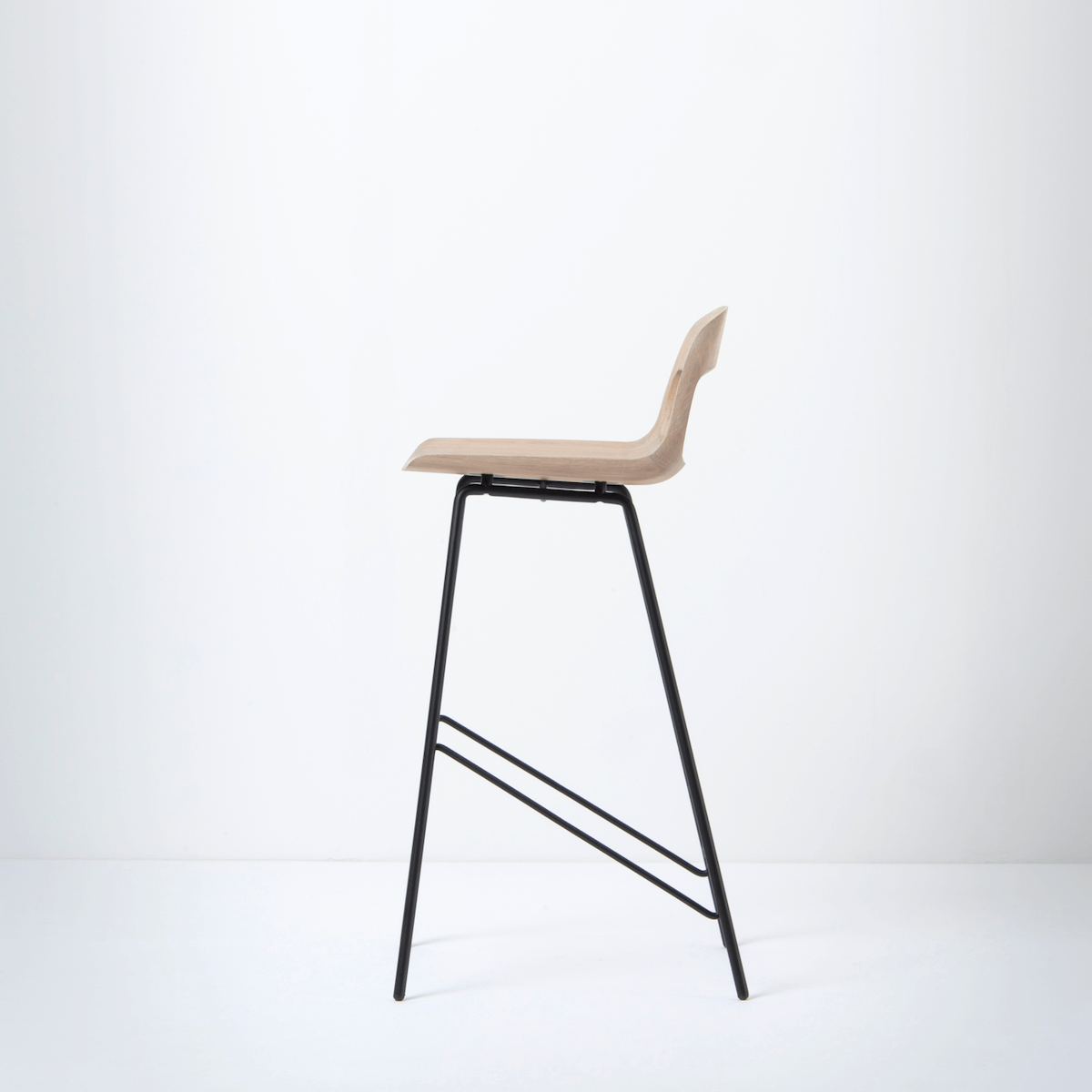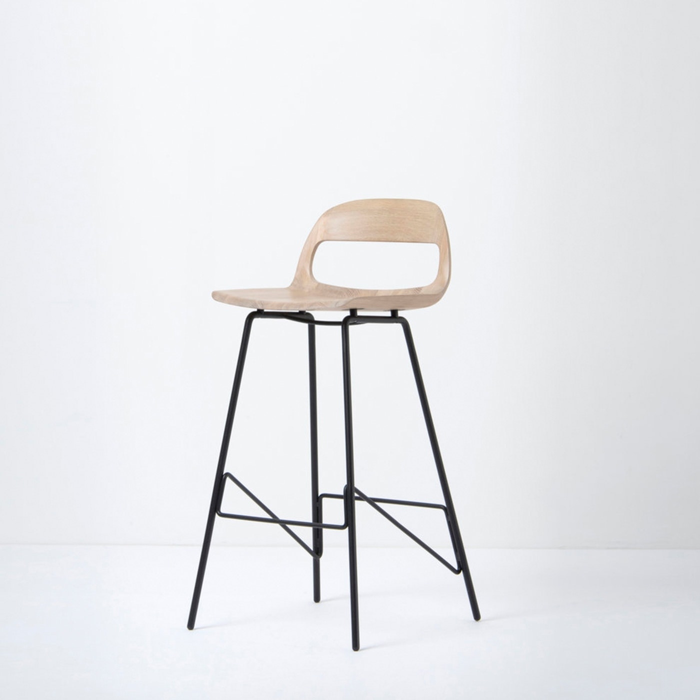 De Gazzda Leina Bar Chair is een prachtige design barkruk. Het mat metalen onderstel is verkrijgbaar in vier kleuren en vormt een modern contrast tegen de eikenhouten zitting. De strakke poten van de barkruk zorgen ervoor dat het meubel licht en modern oogt. Doordat de kleur van de poten beschikbaar is in vier kleuren, maak je de barkruk volledig eigen. Zie je jezelf al zitten aan het ontbijt aan jouw keukenbar? Voordelen