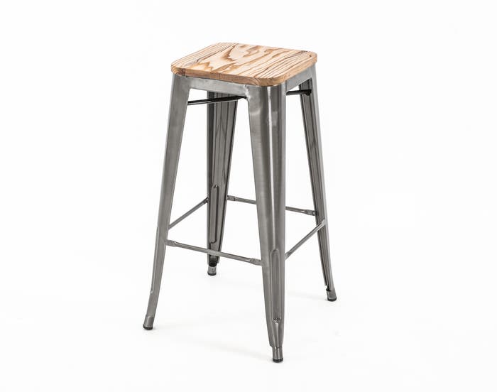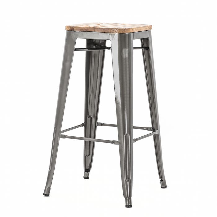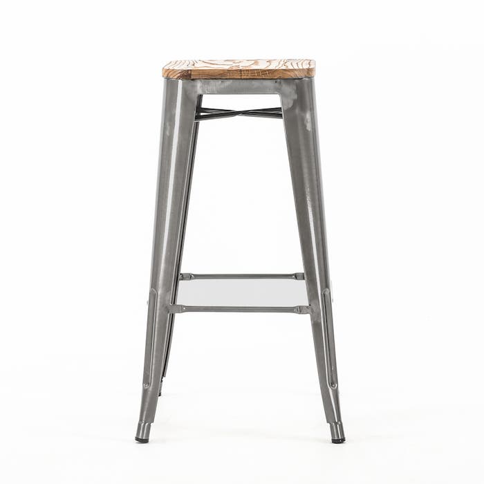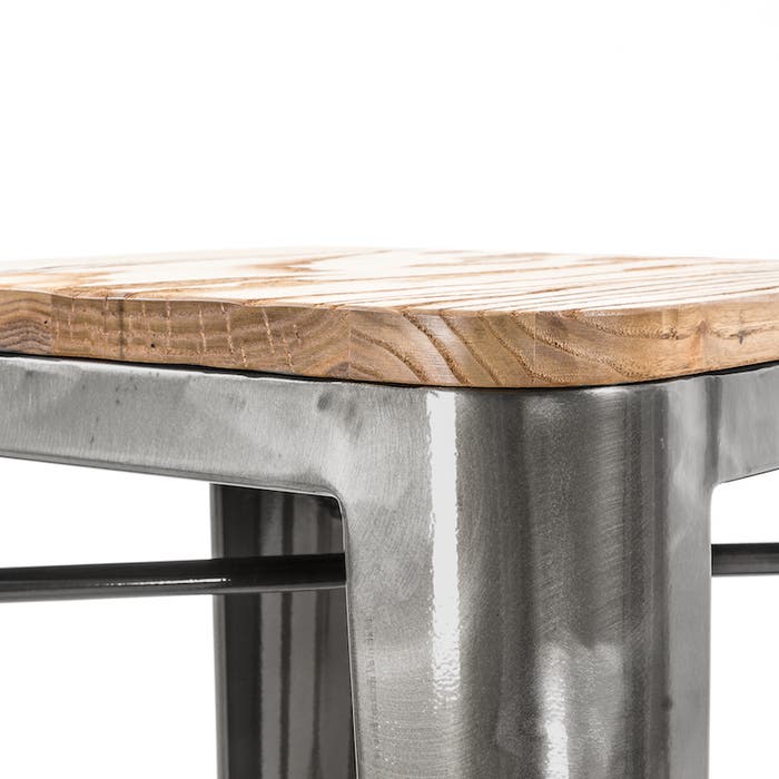 Metalen barkruk industrieel metaal - met houten zitting - 77 cm