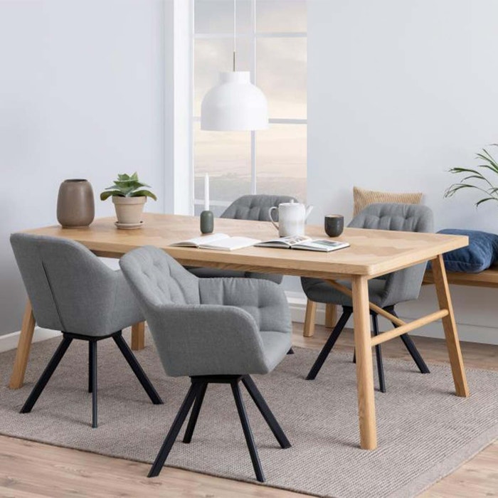 Op zoek naar een eye-cacher voor in je eethoek? Dan is de Gwen eikenhouten eettafel met visgraatmotief van Lisomme precies wat jij zoekt. Deze eetkamertafel is volledig gemaakt van eikenhout en is afgewerkt met een laagje fineer. Er is plek voor zes tot acht personen aan de tafel. Ook heeft deze eettafel een extra breed tafelblad van 100 cm breed. Genoeg ruimte om er een gezellig diner van te maken. Combineer deze tafel bijvoorbeeld met de bijpassende Gwen eetkamerbank. Voordelen