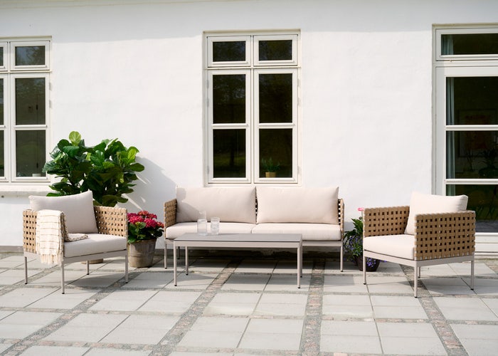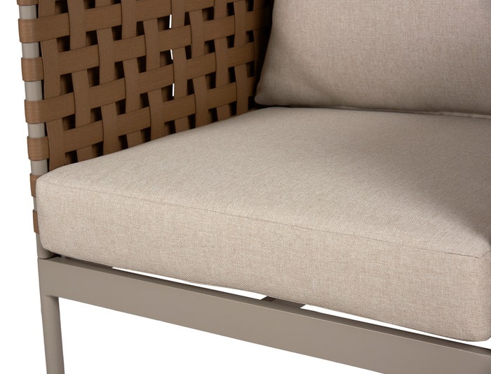 Met deze beige rotan loungeset van Lisomme maak je jouw buitenruimte in één klap gezellig. Deze stijlvolle tuinset is de ideale keuze voor een natuurlijke sfeer in de tuin. De June loungeset bestaat uit twee loungestoelen, een loungebank en een salontafel. De stoelen en de bank zijn gemaakt van aluminium met een taupe poederlak en de zijkanten zijn gemaakt van gewoven rotan. De zitkussens van deze set zijn gemaakt van polyester in een beige kleur. De salontafel is eveneens van aluminium gemaakt en heeft een tafelblad van glas dat is voorzien van een laagje steen. Dit zorgt niet alleen voor extra stevigheid maar geeft de salontafel ook een luxe uitstraling. De June loungeset is speciaal geschikt voor buiten maar om de set langdurig mooi te houden, adviseren we om de zitkussens na gebruik naar binnen te halen en de gehele set op te bergen of af te dekken in de winter.