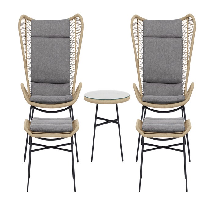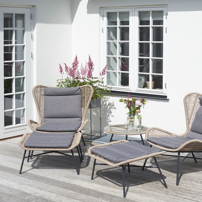 Op de Mateo rotan tuinset van Lisomme is het goed vertoeven. De Mateo tuinset bestaat uit twee grote fauteuils, twee krukjes en een bijzettafeltje. De meubels van deze set hebben allemaal een metalen frame dat is afgewerkt met een zwarte poedercoat, en een zitting van textileen touw wat een rotan-look creëert. Op het bijzettafeltje ligt een glazen plaat. De fauteuils en krukjes hebben bovendien een zachte bekleding van polyester, waardoor ze lekker zacht zitten. Met de Mateo tuinset creëer je direct een gezellig hoekje in de tuin of op het terras. De bijpassende meubels uit deze set hebben een luxe uitstraling en hullen de tuin in een leuke boho sfeer.
