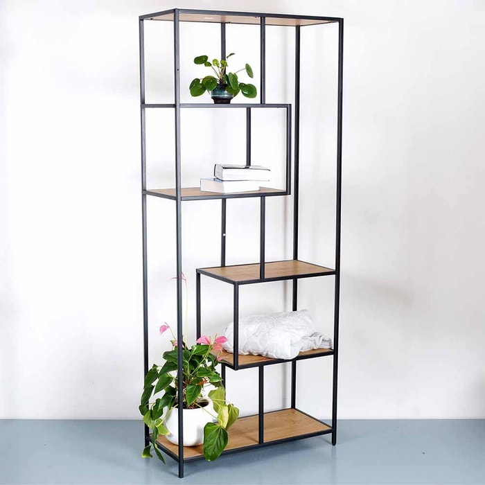 De Vic open boekenkast van Lisomme geeft je interieur een industriële look. De Vic open boekenkast heeft vier planken waardoor er voldoende ruimte is voor het neerzetten van jouw mooiste accessoires. De kast is ontworpen met een asymmetrisch design, met meerdere vakken van verschillend formaat. Deze prachtige houten boekenkast, afgewerkt met een laagje fineer past in ieder interieur. Doordat het metalen frame is afgewerkt met een poedercoating krijgt deze kast een industriële sfeer. Kortom, wanneer je opzoek bent naar een industriële wandkast, dan is deze kast perfect voor jou! Voordelen