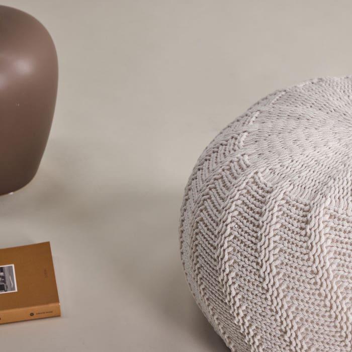 De ronde poef Dina van het merk Nest living is dé eyecatcher voor in jouw interieur Met zijn zachte, handgebreide design en neutrale crème tint voegt de Dina poef direct warmte en textuur toe aan je woonruimte. Dankzij de compacte diameter van 45 cm past hij perfect in elk interieur en biedt hij eindeloze mogelijkheden. Gebruik de Dina poef als hocker, extra zitplek, of zet er een dienblad op en creëer in een handomdraai een praktische salontafel. Ideaal om je kop koffie, favoriete boek, of stijlvolle accessoires in de buurt te hebben als je op de bank zit. Breng deze zachte witte poef in huis en geniet van zijn multifunctionele charme! Voordelen en tips: