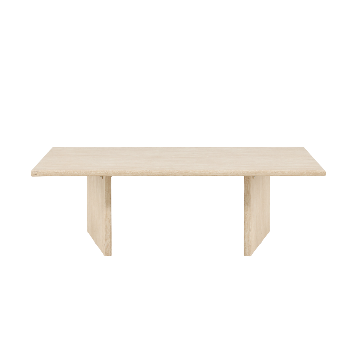 De Hanneke salontafel van Nest Living is een ode aan rust, eenvoud en natuurlijke schoonheid. Met haar zachte beige kleur, vierkante vorm en bijzondere schuingeplaatste poten brengt deze tafel een kalm en modern accent in je interieur. Wat Hanneke écht bijzonder maakt, is de afwerking met een travertine look. Travertine is een natuurlijk kalkgesteente, herkenbaar aan de warme kleur en de unieke textuur met subtiele adertjes en kleine gaatjes. Deze natuurlijke look geeft de tafel een luxe, serene uitstraling die perfect past in een Scandinavisch of minimalistisch interieur. De brede poten – twee rechthoekige houten panelen die schuin onder het blad zijn geplaatst – zorgen voor een speels en krachtig silhouet. Een echte eyecatcher, maar altijd in balans. Voordelen en tips