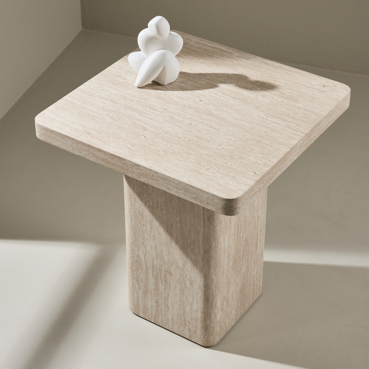 Creëer een stijlvolle zithoek met de Hannes houten salontafel van Nest living. Als je op zoek bent naar een salontafel met een frisse, warme uitstraling, dan is Hannes de perfecte match voor jouw interieur! Deze vierkante salontafel van hout heeft een zachte beige afwerking die zorgt voor een warme en uitnodigende sfeer. Hij is compact met een afmeting van 50 x 50 cm, dus ideaal voor kleinere ruimtes of als extra tafel naast je bank. De tafel is afgewerkt met een travertine-look: een fineerlaag die de uitstraling geeft van echt travertine. Travertine is een natuurlijk kalkgesteente met een warme, lichtbeige kleur en een herkenbare textuur vol subtiele adertjes en kleine gaatjes. Die natuurlijke tekening zorgt voor een rustige, luxe uitstraling die perfect past bij moderne en Scandinavische interieurs. En het fijne is: dankzij de fineerlaag geniet je van die mooie look, maar blijft de tafel licht, makkelijk in onderhoud én vriendelijk geprijsd. Gebruik hem voor je favoriete boeken, een mooie plant of een gezellig kopje koffie – Hannes heeft ruimte voor alles! Deze tafel past in verschillende interieurstijlen zoals Scandinavisch of modern. Voordelen