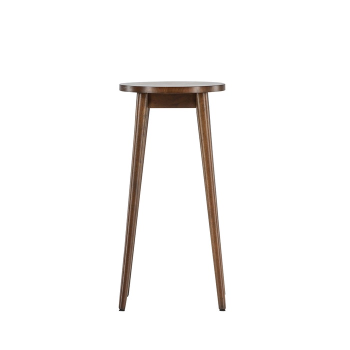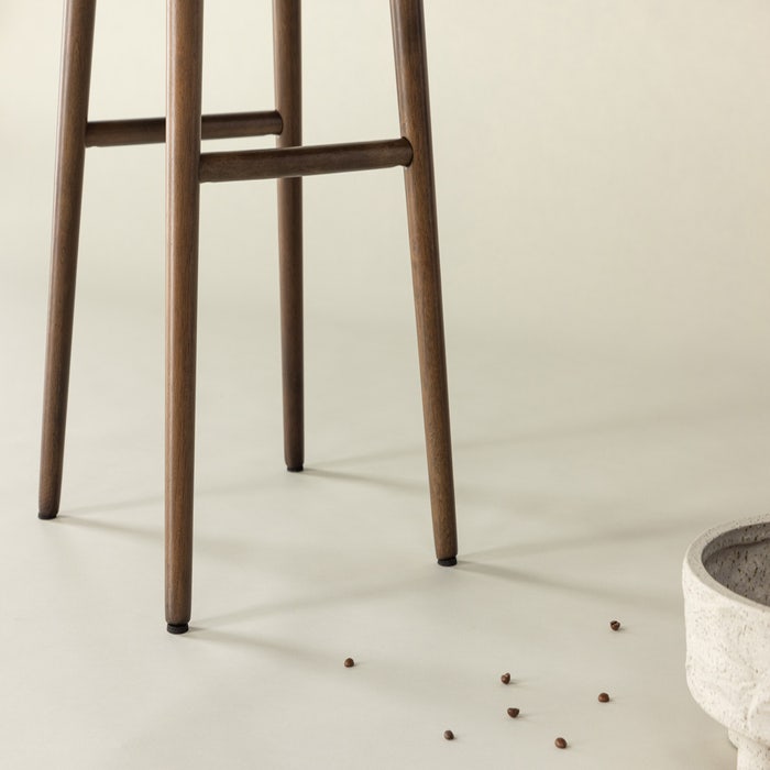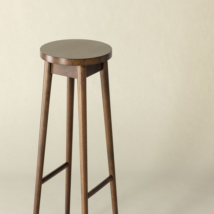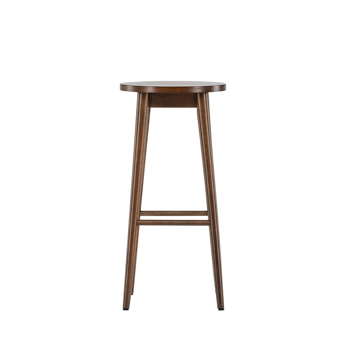 De barkruk is volledig gemaakt van rubberhout en heeft een donkerbruine kleur. In combinatie met de ronde zitting en de ronde poten zorgt dit voor een retro-Scandinavische uitstraling. Door de zithoogte van 75 centimeter is deze barkruk van hout geschikt om te gebruiken aan een hoge eettafel of bar. De handige voetsteun biedt extra comfort tijdens een gezellig diner of een snel ontbijt.