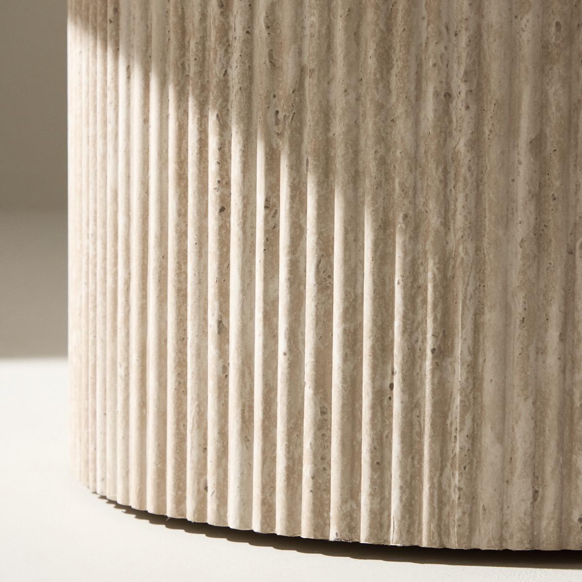 De Nohr salontafel van Nest Living is gemaakt van hout en afgewerkt met een natuursteenlook die overal tot z’n recht komt. Met zijn ronde vorm, neutrale beige tint en stevige houten constructie is dit tafeltje een echte sfeermaker. Gebruik ‘m voor je koffiekopje, favoriete tijdschriften of een mooie vaas – Nohr doet het allemaal met stijl. De tafel is afgewerkt met een travertine-look: een fineerlaag die de uitstraling geeft van echt travertine. Travertine is een natuurlijk kalkgesteente met een warme, lichtbeige kleur en een herkenbare textuur vol subtiele adertjes en kleine gaatjes. Die natuurlijke tekening zorgt voor een rustige, luxe uitstraling die perfect past bij moderne en Scandinavische interieurs. En het fijne is: dankzij de fineerlaag geniet je van die mooie look, maar blijft de tafel licht, makkelijk in onderhoud én vriendelijk geprijsd. Liever iets kleiners? Nohr is er ook in een 50 cm variant! Of combineer beide maten voor een speels duo met hoogteverschil. Voordelen en tips: