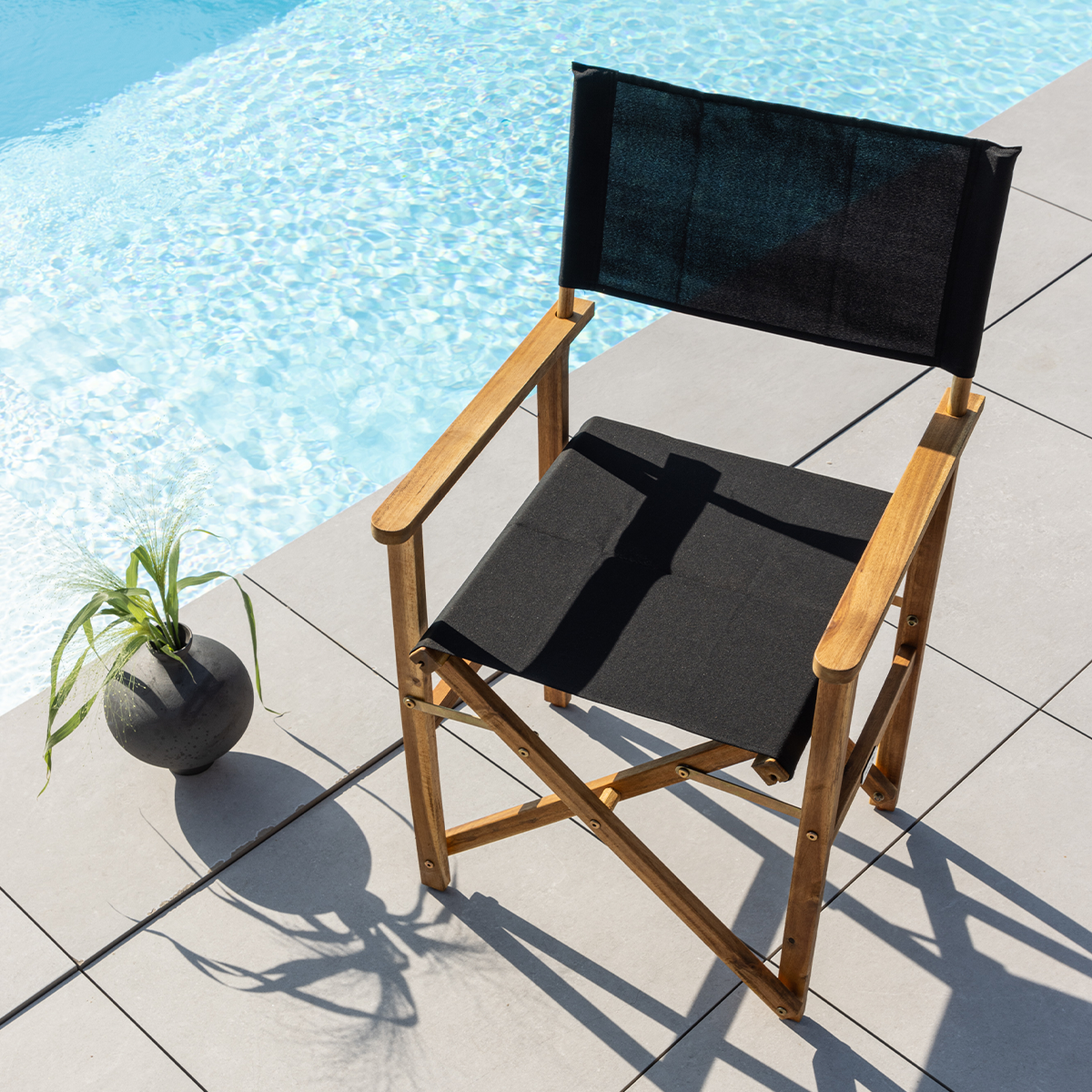 Met de Alba inklapbare houten tuinstoel heb je altijd een comfortabele zitplek bij de hand. De Alba tuinstoel is gemaakt van acaciahout en heeft een daardoor een prachtige warme, natuurlijke uitstraling. De zitting en de rugleuning zijn gemaakt van polyester stof in een zwarte kleur. Het ontwerp van de Alba tuinstoel doet denken aan een echte regisseursstoel. Ondanks dat de tuinstoel inklapbaar is, heeft de Alba een stabiel frame waar je lang comfortabel op kan zitten. De armleuningen zorgen daarbij voor extra comfort en een ontspannen houding. Gebruik de Alba houten tuinstoel aan de tuintafel, op het balkon, onder de overkapping of op de camping. Voordelen