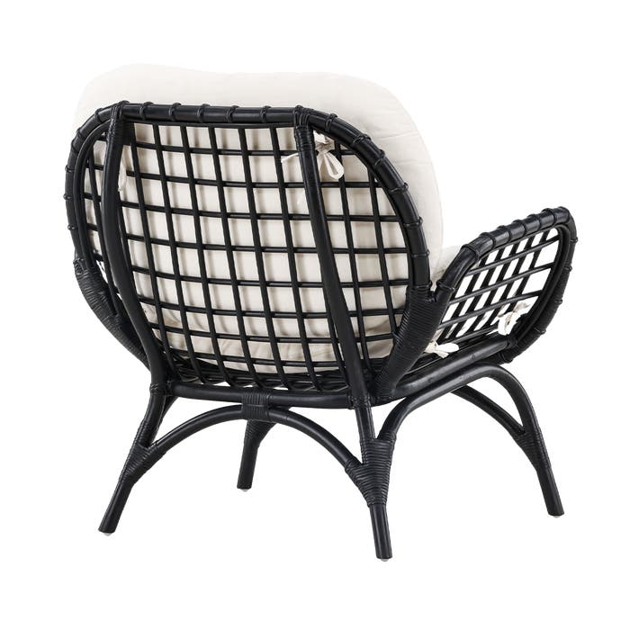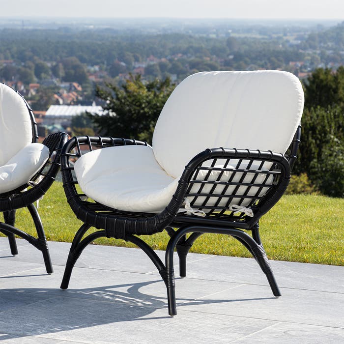 Brenda rotan tuin loungestoel zwart - met witte zitkussens