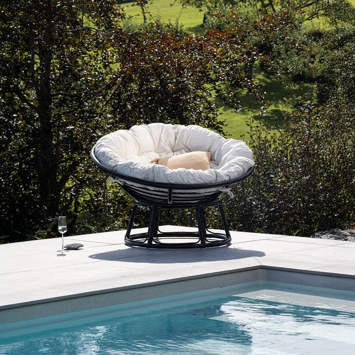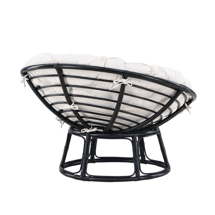 Camiel rotan loungestoel zwart - met wit zitkussen