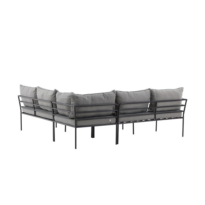 De stijlvolle Connor loungeset van Nest outdoor is de perfecte aanvulling voor op het terras. Deze tuin loungeset bestaat uit een hoekbank en een bijpassende salontafel die geschikt zijn om buiten te gebruiken. De loungebank heeft een zwart frame gemaakt van gepoedercoat staal. De tuinbank is voorzien van zitkussens met een foam vulling en grijze polyester bekleding. De tuin salontafel heeft hetzelfde zwarte stalen frame en is afgewerkt met een tafelblad van acaciahout met afgeronde hoeken. De combinatie van deze materialen en kleuren zorgt ervoor dat de Connor loungeset een stoere en industriële uitstraling heeft. Geef deze 2 delige tuin loungeset een mooi plekje op het terras en geniet van de zomerdagen in je eigen achtertuin. De afmetingen van de set zijn als volgt: