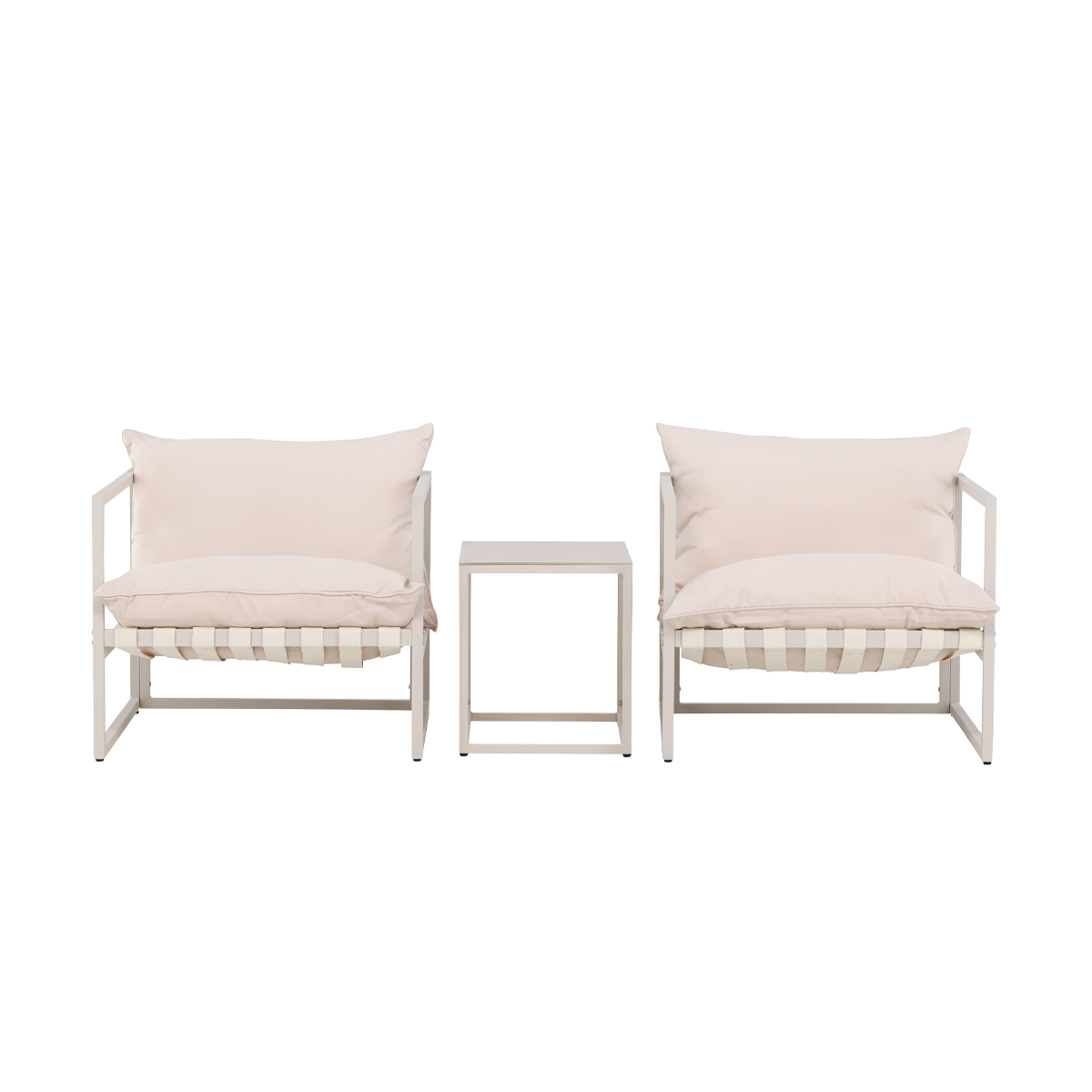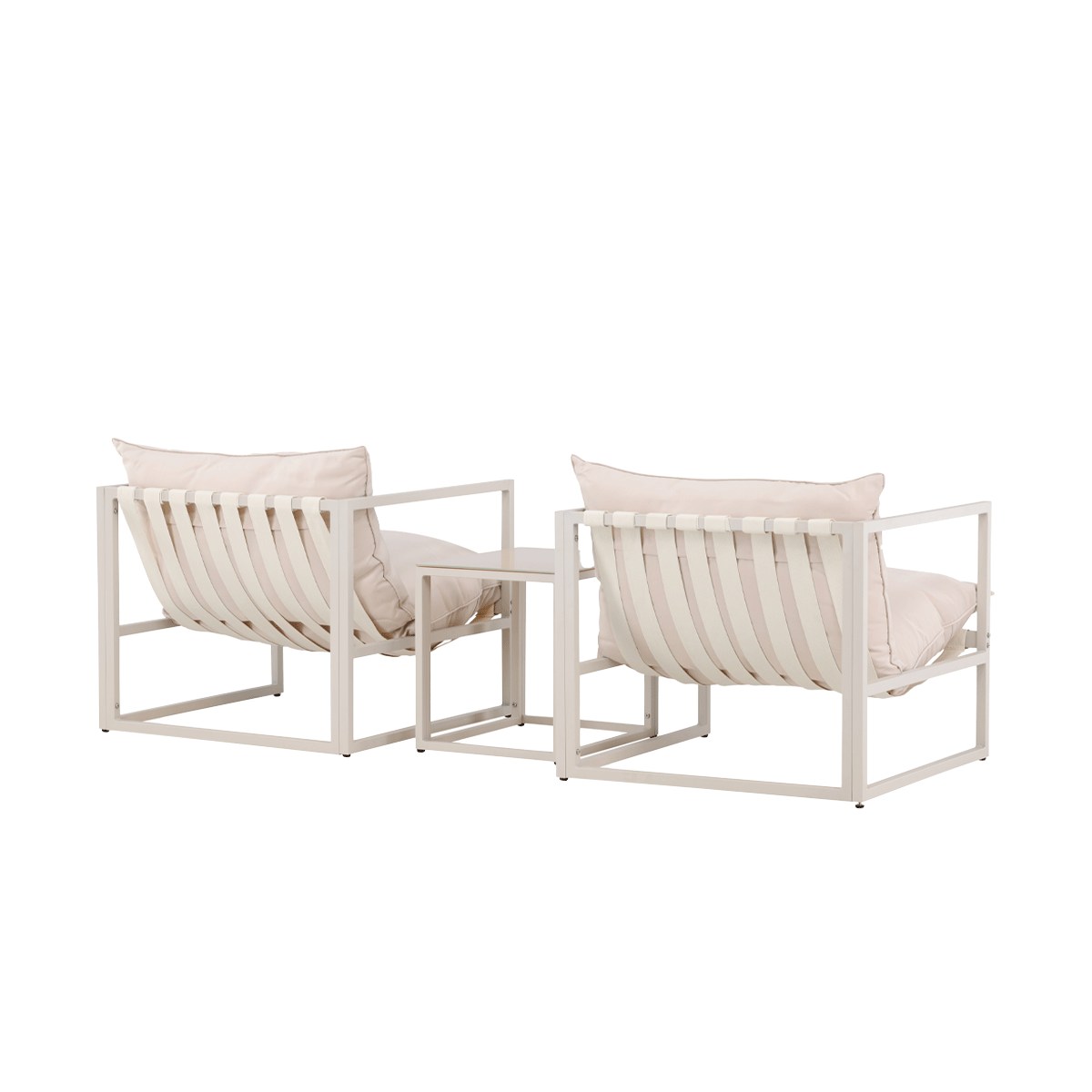 Ebba tuin loungeset beige 3 delig – twee stoelen en een salontafel - met zitkussens