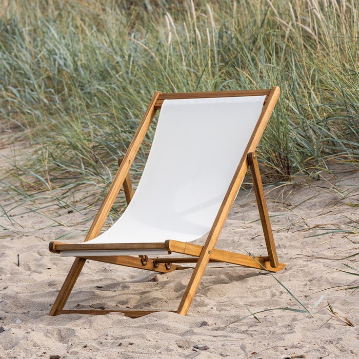 Eileen houten strandstoel naturel met witte zitting