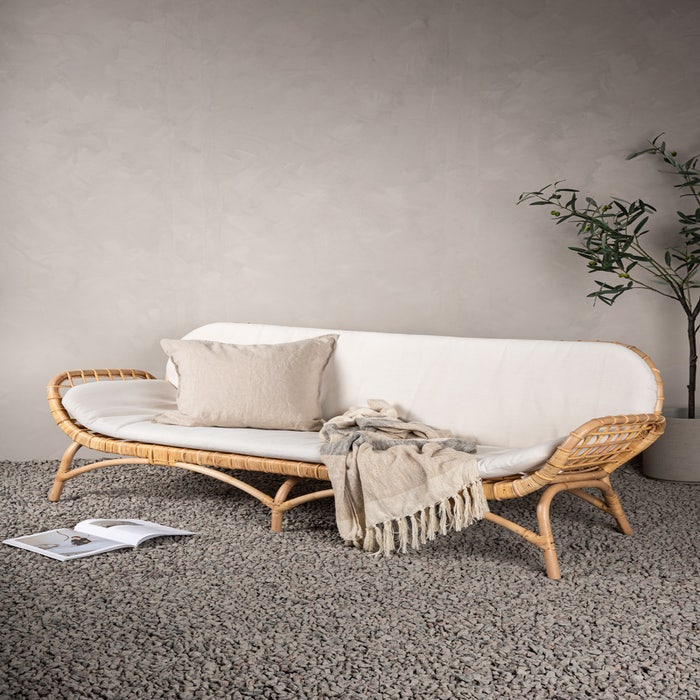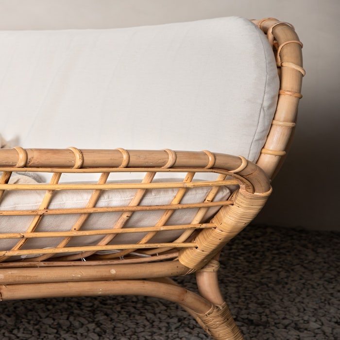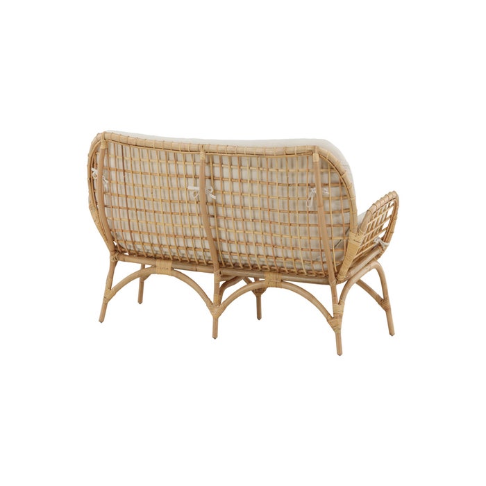 De rotan tuinbank Freya van Nest outdoor is een echte zomerse blikvanger bij jou in de tuin. De tuinbank is gemaakt van rotan en heeft twee zitkussens in beige polyester bekleding. De bekleding van de kussens is afneembaar. Met deze tuinbank roep je dat Ibiza en bohemian-gevoel zo op in je eigen achtertuin. Dankzij de leuke details en zachte vormen in het natuurlijke rotan is de Freya loungebank een tuinmeubel dat direct in het oog springt. De tuinbank is geschikt voor drie personen. Vakantie vieren in eigen tuin is nog nooit zo makkelijk geweest! Voordelen