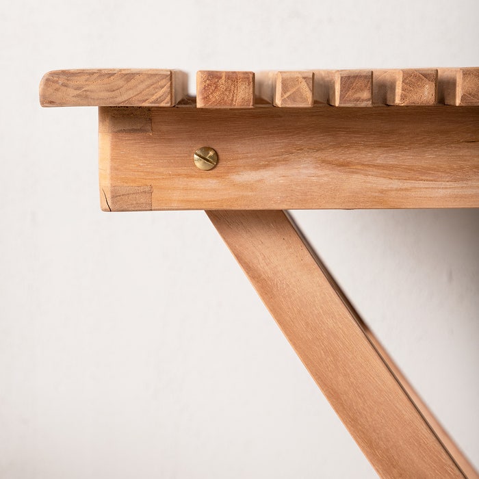 De Joan inklapbare houten tuintafel van Nest outdoor is een handig tafeltje dat je buiten op verschillende plekken neer kan zetten. De houten tuintafel heeft een compacte afmeting en is bovendien inklapbaar, zodat je hem eenvoudig opbergt om ruimte te besparen. De ideale tafel voor een kleine tuin of balkon dus! De Joan tuintafel is volledig gemaakt van teakhout en heeft een warme, natuurlijke uitstraling. Naast de prachtige uitstraling staat teak ook bekend om zijn duurzaamheid en weerbestendigheid. De Joan terrastafel is dus bestand tegen de elementen en gaat jarenlang mee. Om de levensduur te verlengen wordt wel aangeraden de tafel droog op te bergen tijdens de winter. Voordelen en tips