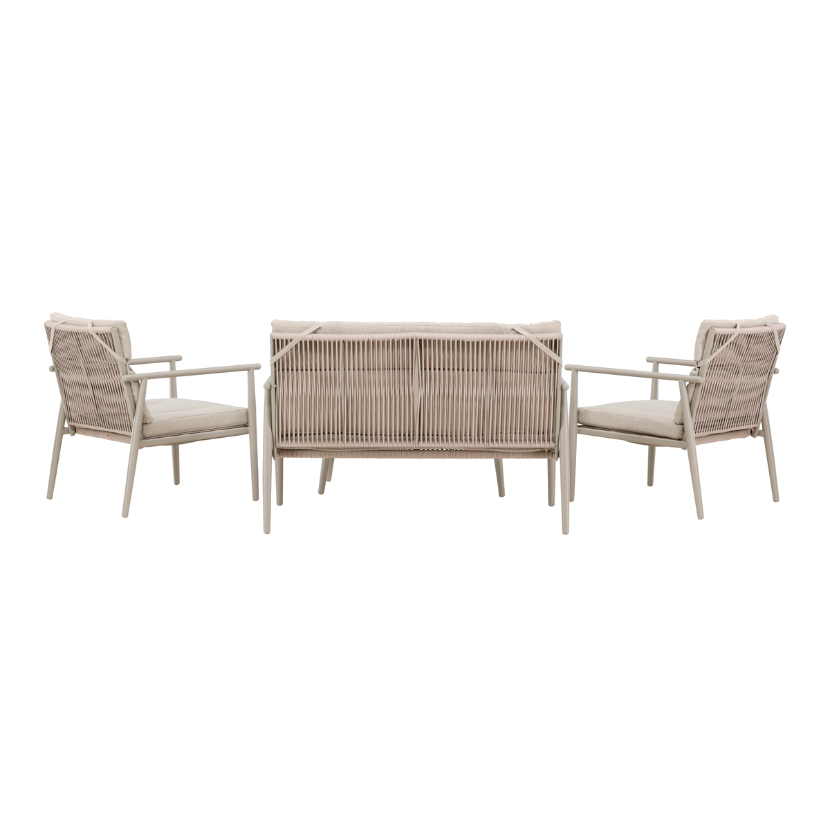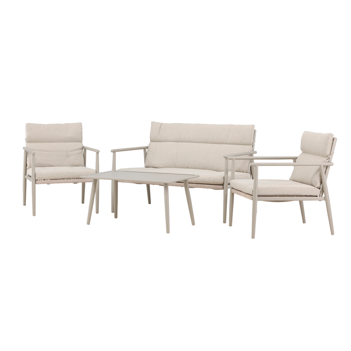 Margret tuin loungeset beige- tweezits bank, twee fauteuils en een salon tafel - met zitkussens