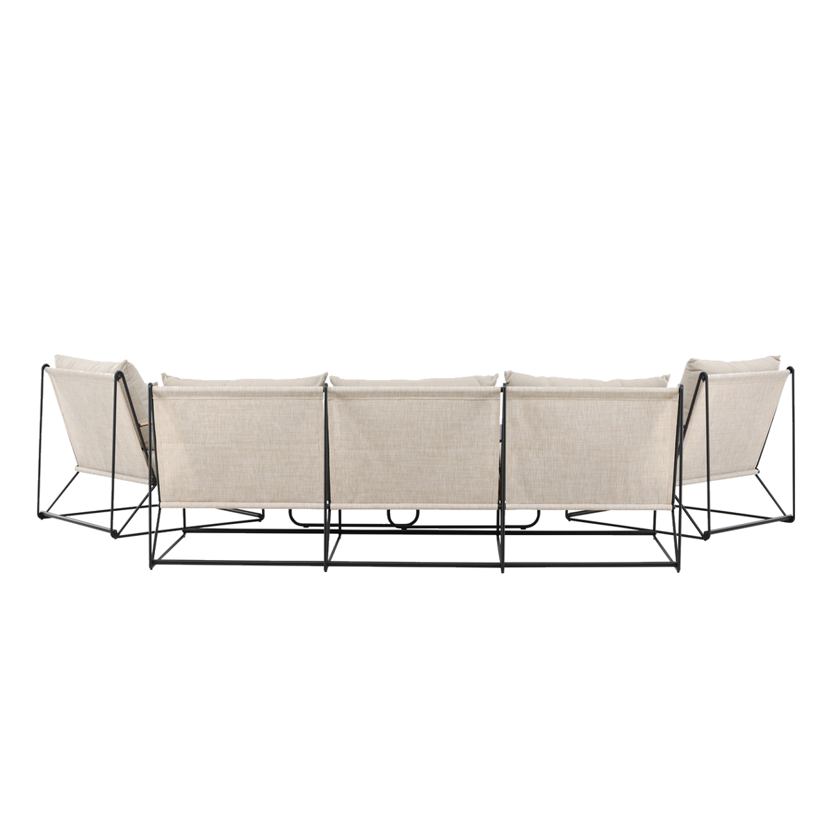 De achterzijde van de meubels is voorzien van een stevig polyester doek, wat zorgt voor extra ondersteuning en een comfortabele zit. De kussens zijn gemaakt van textileen: een sterk, weerbestendig en onderhoudsvriendelijk materiaal dat eenvoudig schoon te maken is en geschikt is voor buitengebruik.