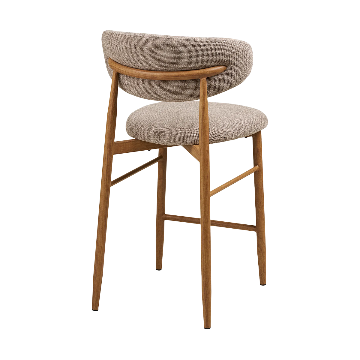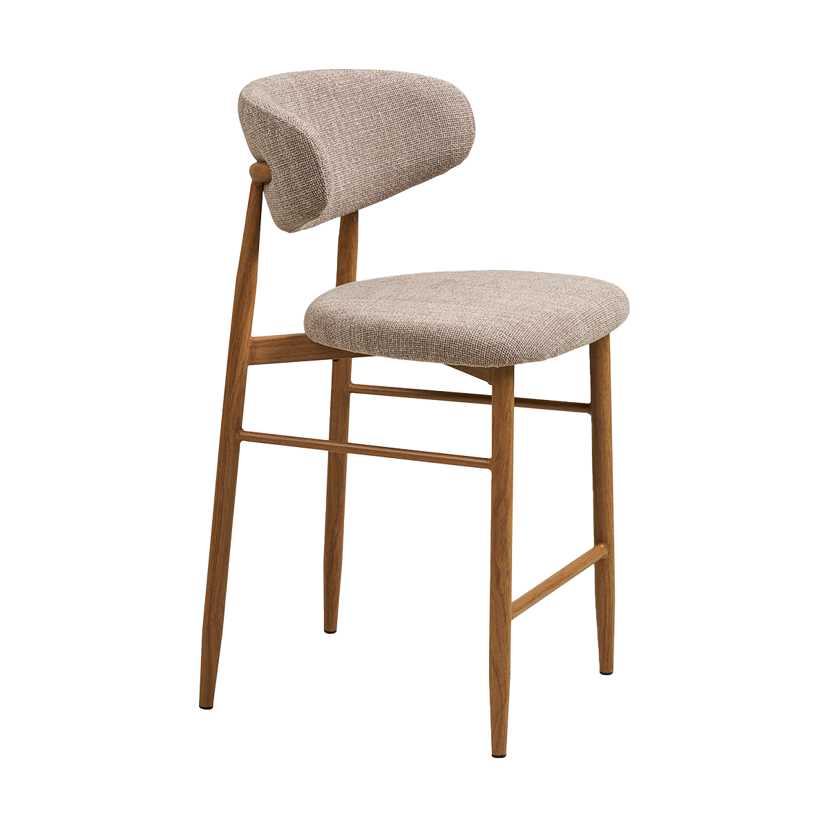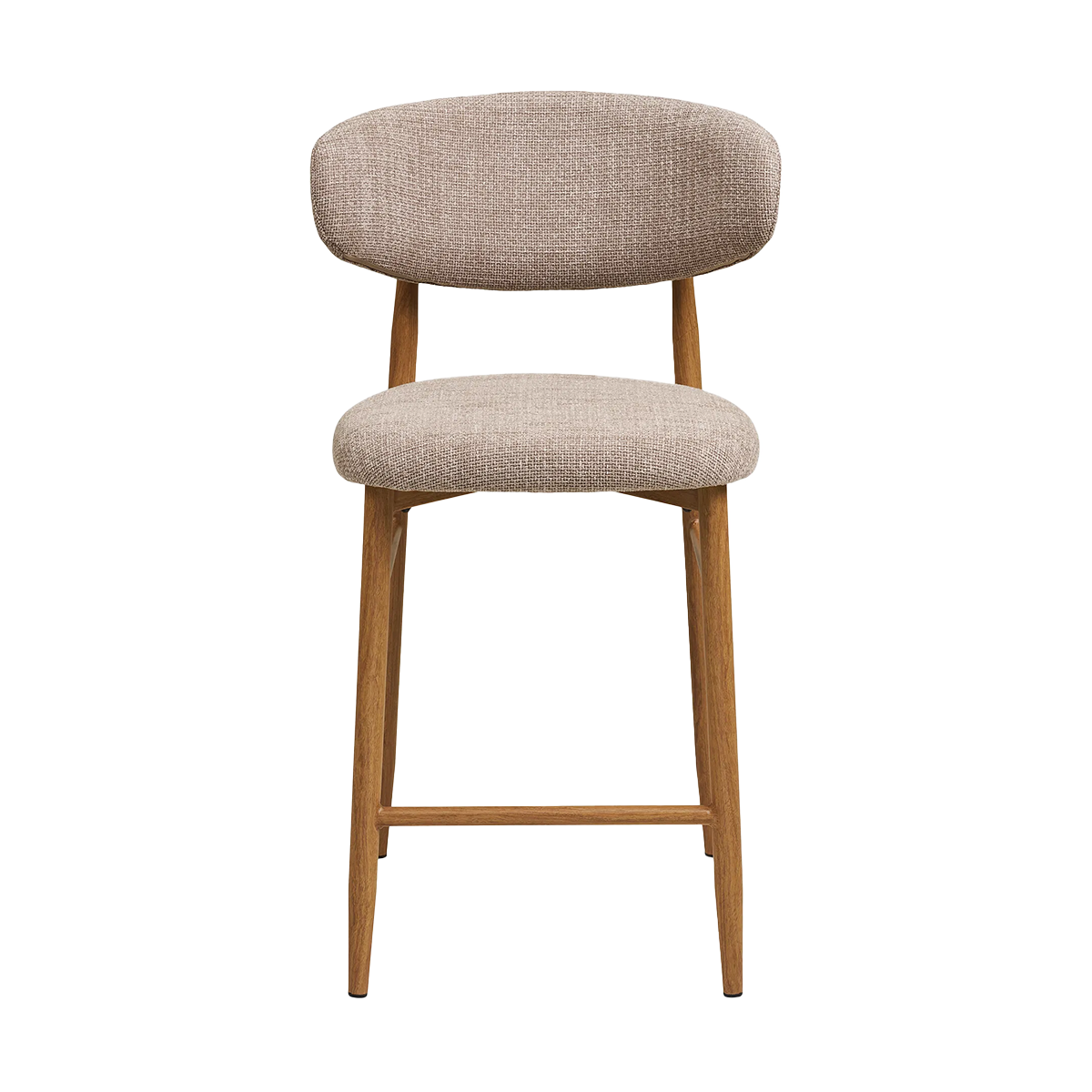 De kruk heeft een tijdloos ontwerp en de warme taupe kleurige bekleding past deze barkruk moeiteloos in verschillende interieurstijlen en creëer je eenvoudig een gezellige zitplek aan je kookeiland of bar. De Jolien barkruk heeft een zachte zitting en een comfortabele grote rugleuning, waardoor je er heerlijk op zit tijdens lange gesprekken aan het kookeiland of een gezellige borrel. Het slanke onderstel lijkt op hout, maar is volledig gemaakt van stevig metaal. Dankzij de realistische houtnerfprint krijgt het frame een natuurlijke uitstraling, terwijl je profiteert van de voordelen van metaal: sterk, krasbestendig en onderhoudsvriendelijk.De taupekleurige bekleding zorgt voor een rustige en warme sfeer in de ruimte, terwijl het lichte ontwerp een moderne en luchtige look geeft. Met een zithoogte van 65 cm is de Jolien barkruk perfect voor een kookeiland of lagere bar. Plaats meerdere barkrukken naast elkaar voor een stijlvolle en uitnodigende zithoek.