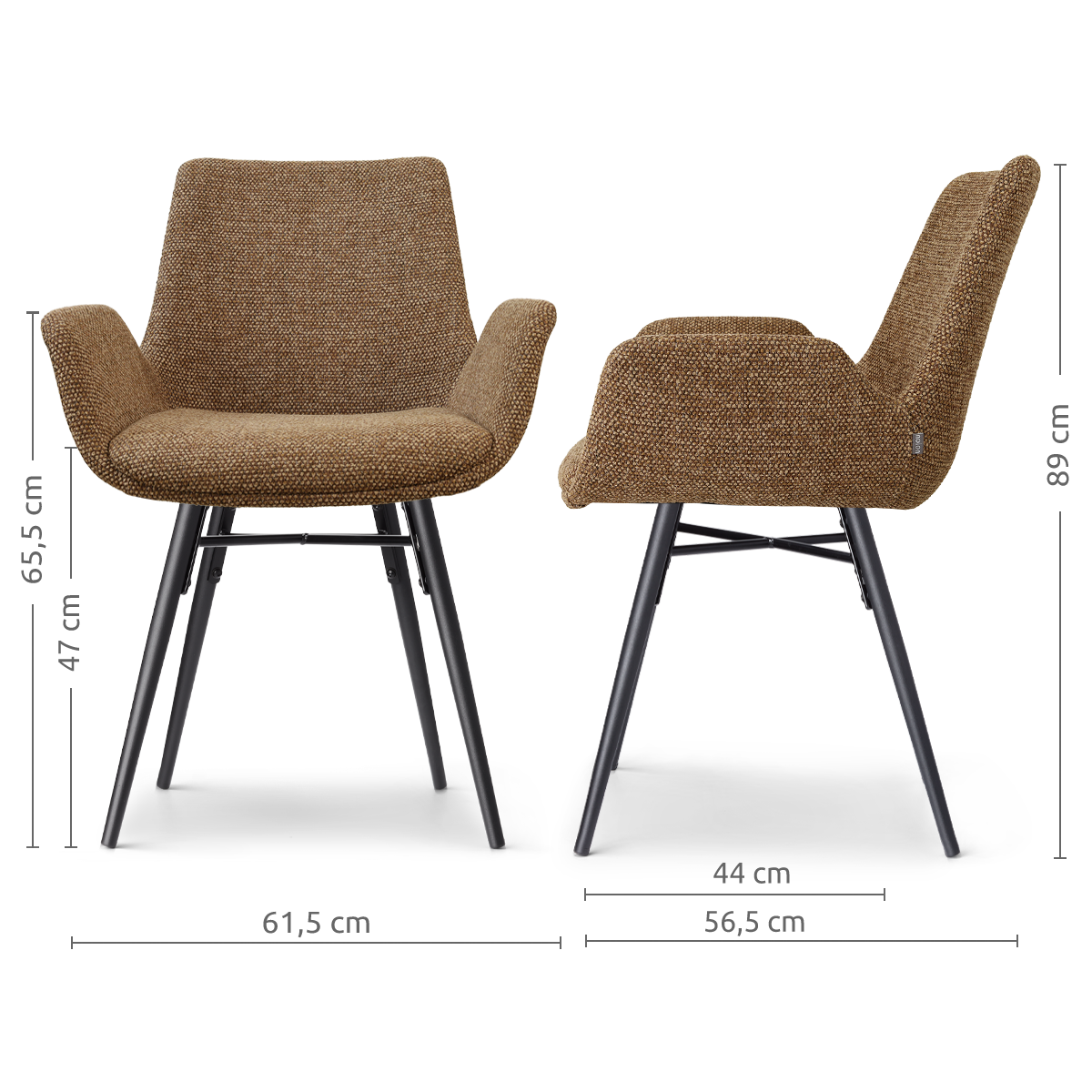 Nena-Eef eetkamerstoel bruin blend - zwart houten onderstel