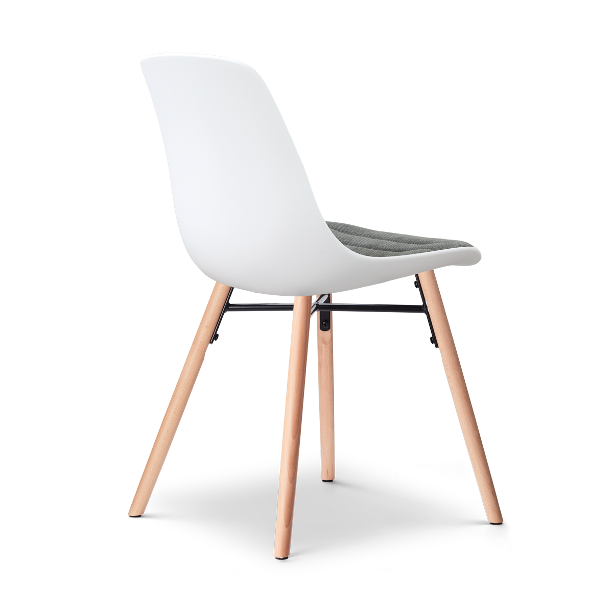 Nena-Liv eetkamerstoel wit met zeegrijs zitkussen - houten onderstel