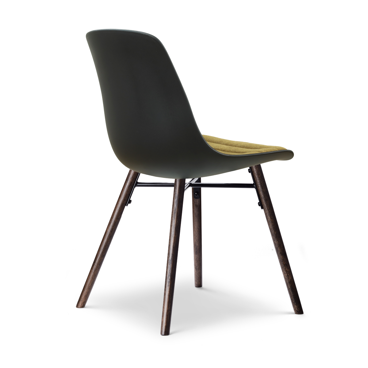 Nena-Liv eetkamerstoel zwart met mosgroen zitkussen - walnoot houten onderstel