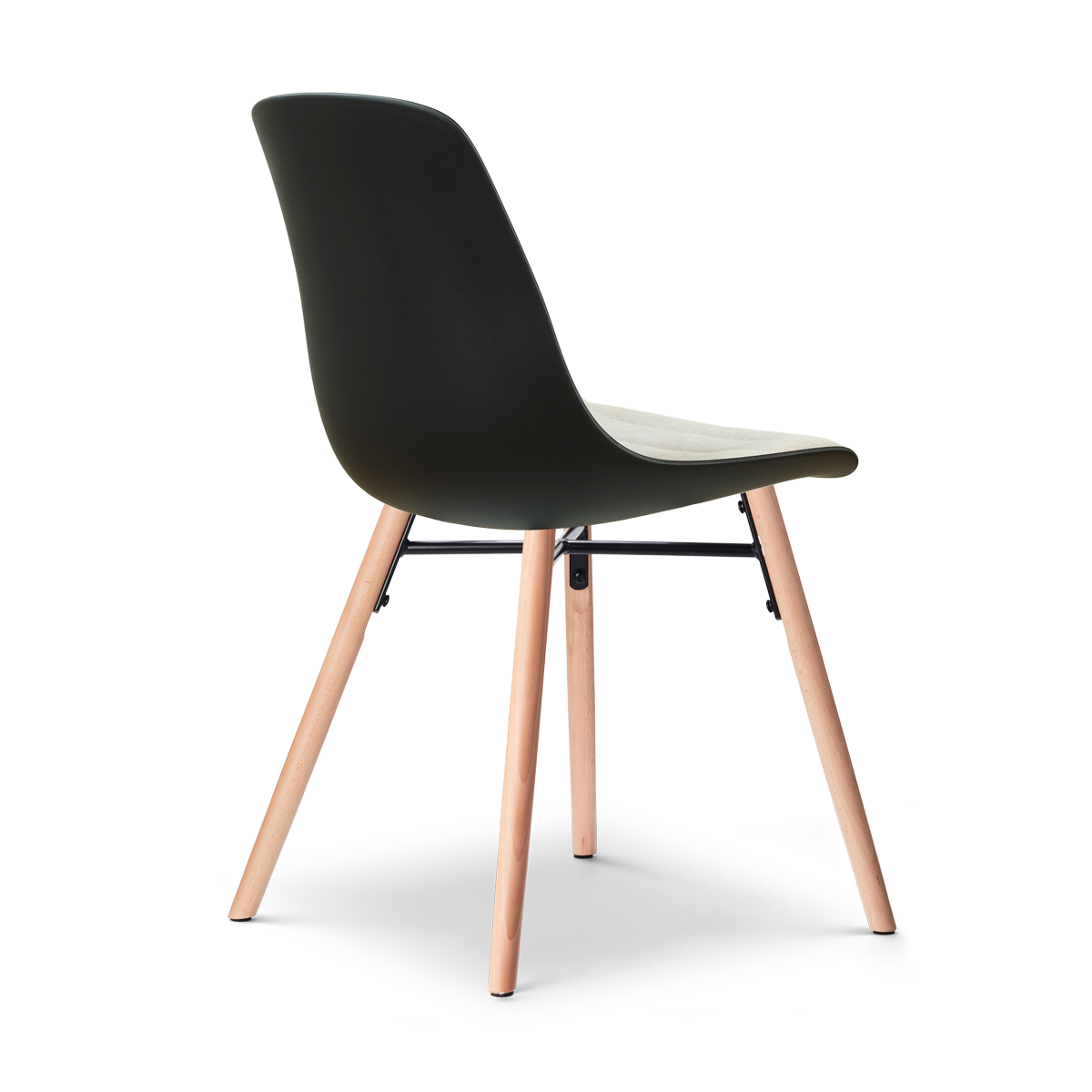Nena-Liv eetkamerstoel zwart met naturelbeige zitkussen - houten onderstel