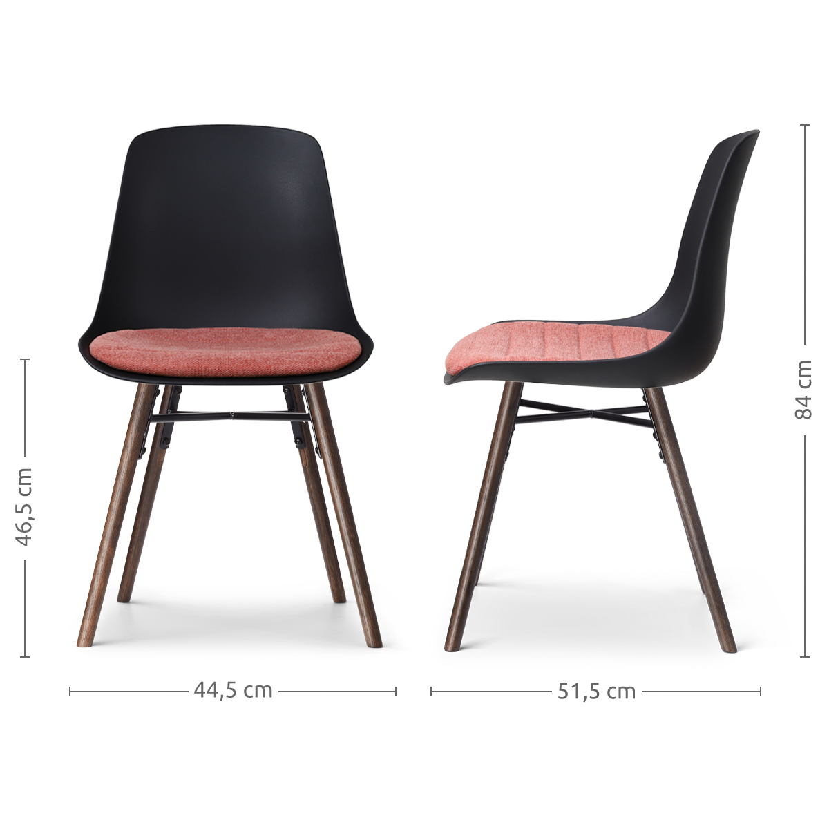 Nena-Liv eetkamerstoel zwart met terracotta rood zitkussen - walnoot houten onderstel