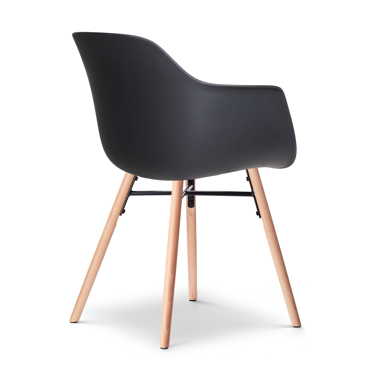 Een praktische en tegelijkertijd sfeervolle eetruimte creëer je met de Nena-Liz eetkamerstoel met kunststof zitting en armleuningen. De ergonomische vorm en het doordachte design maken van de Nena-Liz de ideale keuze voor je eethoek. Deze eetkamerstoel combineert een functionele kunststof zitting met een sfeervol houten onderstel. De beukenhouten poten hebben een naturel houtkleur en worden verstevigd door een zwarte metalen kruisverbinding bovenin. De zitting is gemaakt van door en door gekleurd kunststof, waardoor de stoel bestand is tegen krassen en beschadigingen. Dankzij de flexibele kunststof kuip en de armleuningen kan je een ontspannen zithouding aannemen, terwijl het vaste zitkussen bekleed met hoogwaardige stof ervoor zorgt dat je lekker zacht zit. Het leuke aan de Nena-Liz eetkamerstoel is dat je zelf kan bepalen hoe hij eruitziet. Maak een keuze uit de witte of zwarte zitting en kies uit vijf verschillende kleuren stof voor het vaste zitkussen om deze stoel helemaal aan jouw wensen te laten voldoen. Voordelen en tips