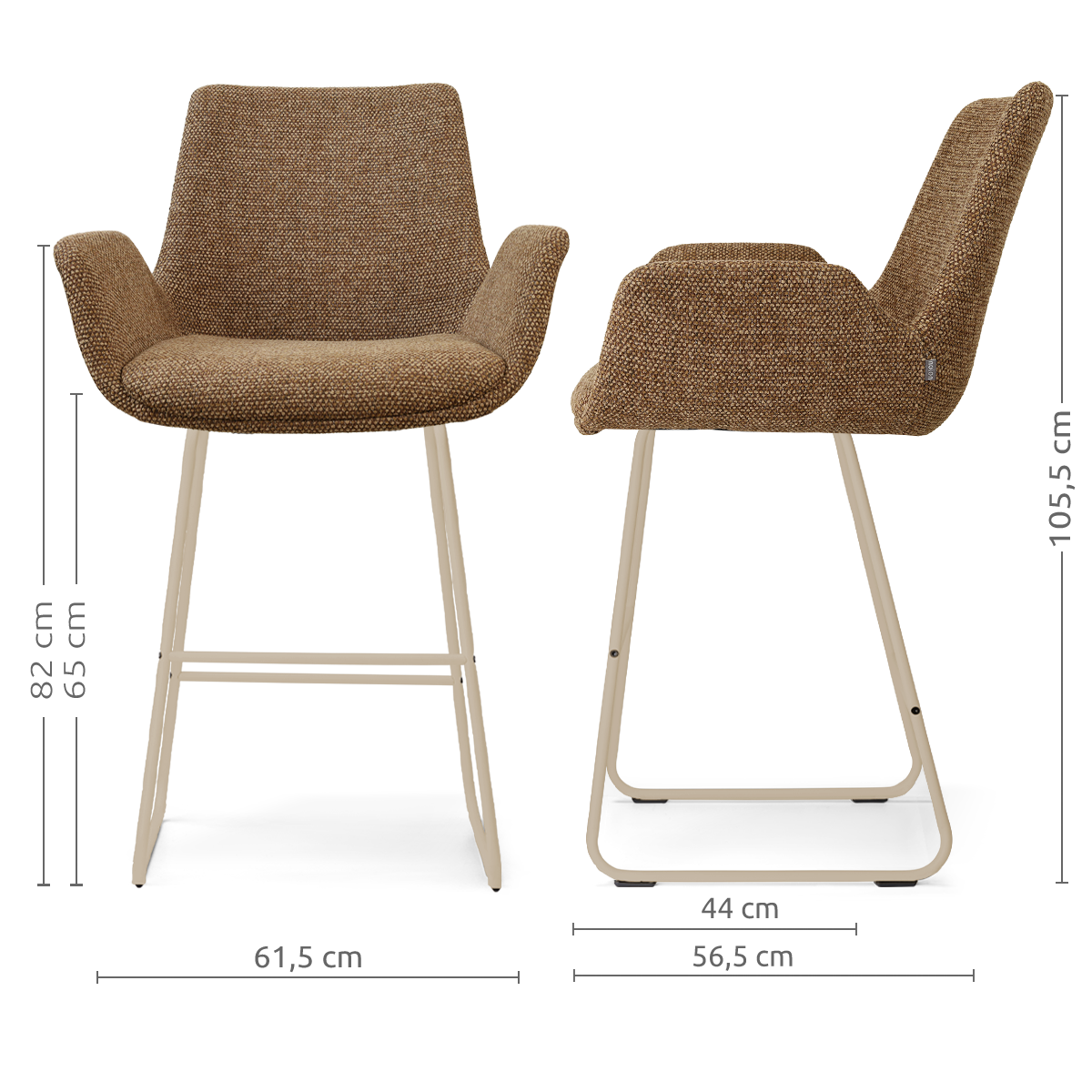 De Nino-Eef barkruk van Nolon met beige metalen onderstel combineert comfort en een moderne uitstraling aan het kookeiland. De zachte stoffen bekleding en afgeronde vormen geven de barkruk een warme en uitnodigende look die perfect past in een stijlvolle keuken. De ruime zitting met armleuningen biedt prettig zitcomfort tijdens het ontbijt, een kop koffie of een gezellig moment aan het kookeiland. De gebogen rugleuning ondersteunt de rug op een natuurlijke manier, waardoor je ontspannen blijft zitten. Het witte metalen onderstel geeft de barkruk een frisse en minimalistische uitstraling. De slanke poten vormen een stevige basis en de geïntegreerde voetensteun zorgt voor extra comfort tijdens het zitten. Met een zithoogte van 65 cm is deze barkruk ideaal voor gebruik aan een kookeiland of lagere bartafel. Dankzij het tijdloze ontwerp past deze stoffen barkruk met armleuningen moeiteloos in een Scandinavisch, modern of Japandi interieur. Plaats meerdere barkrukken naast elkaar voor een stijlvol en harmonieus geheel in de keuken. Tips & adviesMet een paar eenvoudige tips blijft je stoel mooi en prettig in gebruik: