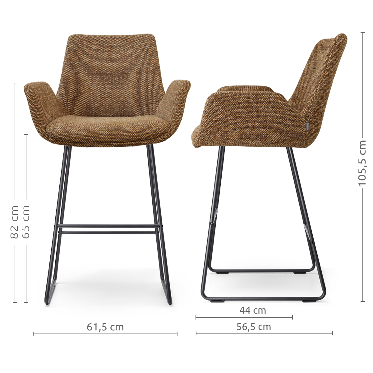 De Nino-Eef barkruk van Nolon is een stijlvolle barkruk met armleuningen voor aan je kookeiland. Deze barkruk is ontworpen met zowel functionaliteit als esthetiek in gedachten. Het slanke metalen onderstel zorgt voor een stabiele zit en laat de barkruk tegelijkertijd modern en luchtig ogen. De comfortabele zitting heeft een stevige rugleuning en is verkrijgbaar met luxe stoffen bekleding of bouclé stof. Hiermee is de Nino-Eef een sfeervolle toevoeging aan de keuken. Naast de rugleuning is de Nino-Eef bovendien ontworpen met armleuningen voor extra ondersteuning. Deze armleuningen zijn iets lager dan standaard, wat niet ten koste gaat van het zitcomfort maar er wel voor zorgt dat de kruk beter onder het keukenblad past. De voetsteun op het metalen frame maakt de barkruk vervolgens helemaal af. Maak een keuze uit de verschillende materialen en kleuren van de zitting en geniet van ultieme stijl en comfort aan je kookeiland. Voordelen en tips