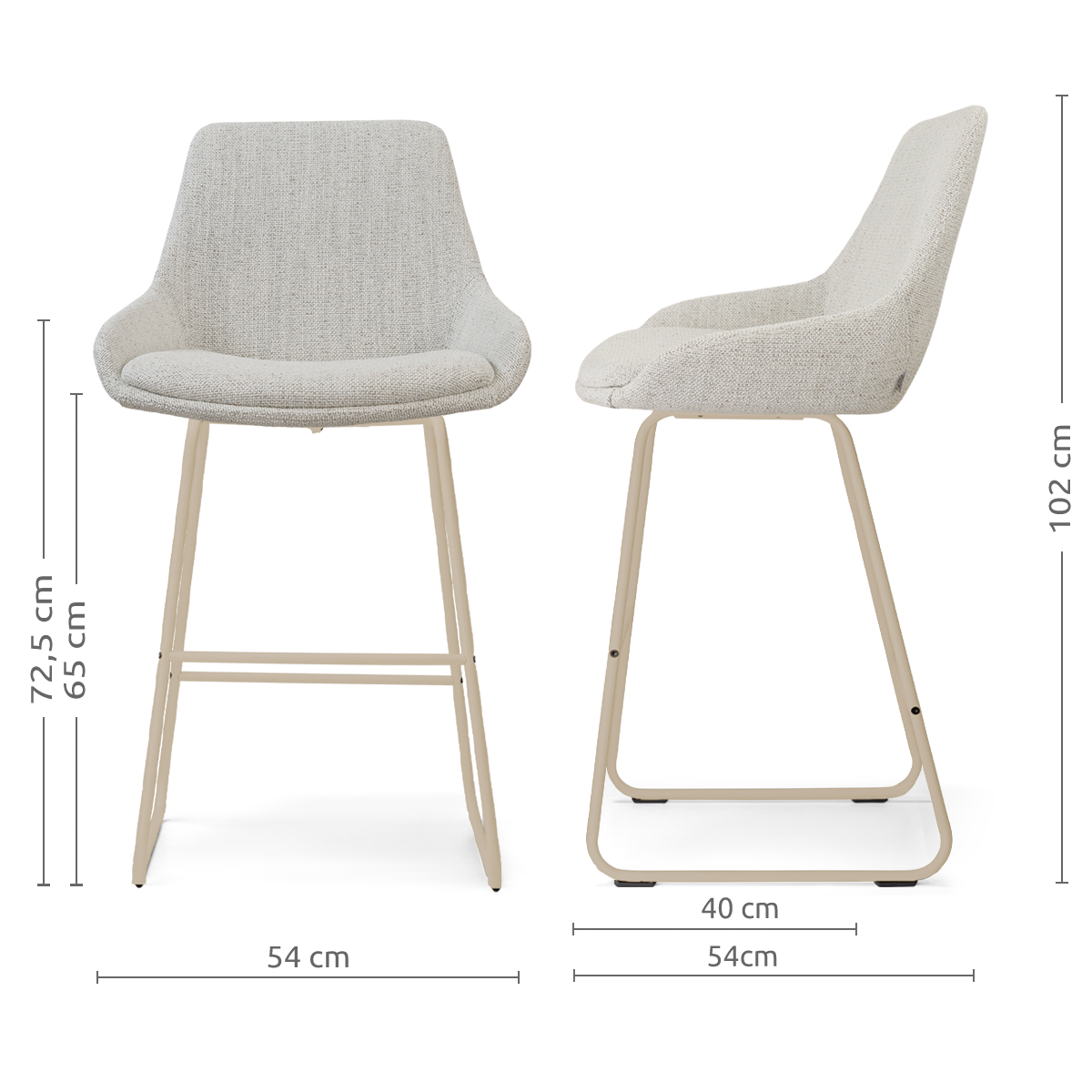 De Nino-Isa barkruk van Nolon met beige metalen onderstel combineert een modern design met comfortabel zitgemak aan het kookeiland. De zachte stoffen bekleding en subtiele rondingen geven de barkruk een warme uitstraling die mooi aansluit bij een eigentijdse keuken. De comfortabel gevormde zitting en licht gebogen rugleuning bieden prettige ondersteuning tijdens het zitten. Hierdoor zit je ontspannen tijdens het ontbijt, een kop koffie of een gezellig moment aan het kookeiland. Het slanke witte metalen onderstel zorgt voor een frisse en minimalistische uitstraling. De stevige constructie en geïntegreerde voetensteun maken het mogelijk om langere tijd comfortabel te zitten. Met een zithoogte van 65 cm is deze barkruk perfect geschikt voor een kookeiland of lagere bartafel. Dankzij het tijdloze ontwerp past deze stoffen barkruk met metalen onderstel moeiteloos in een Scandinavisch, modern of Japandi interieur. Plaats meerdere barkrukken naast elkaar voor een stijlvol en harmonieus geheel in de keuken. Tips & adviesMet een paar eenvoudige tips blijft je stoel mooi en prettig in gebruik: