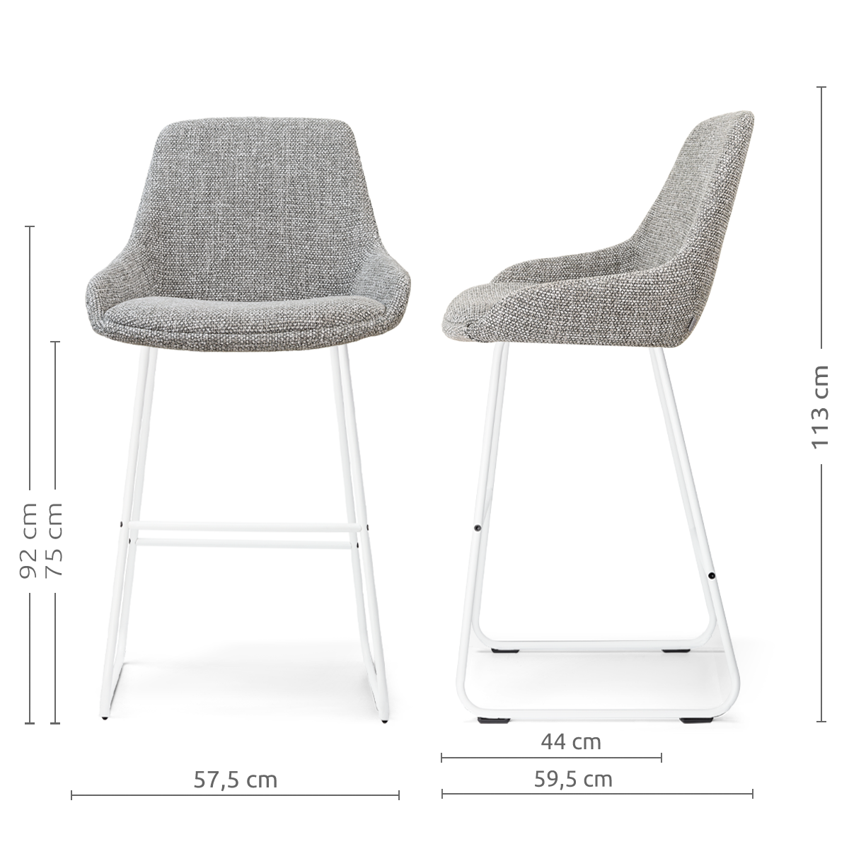 Nino-Isa barkruk grijs blend - wit onderstel - 75 cm