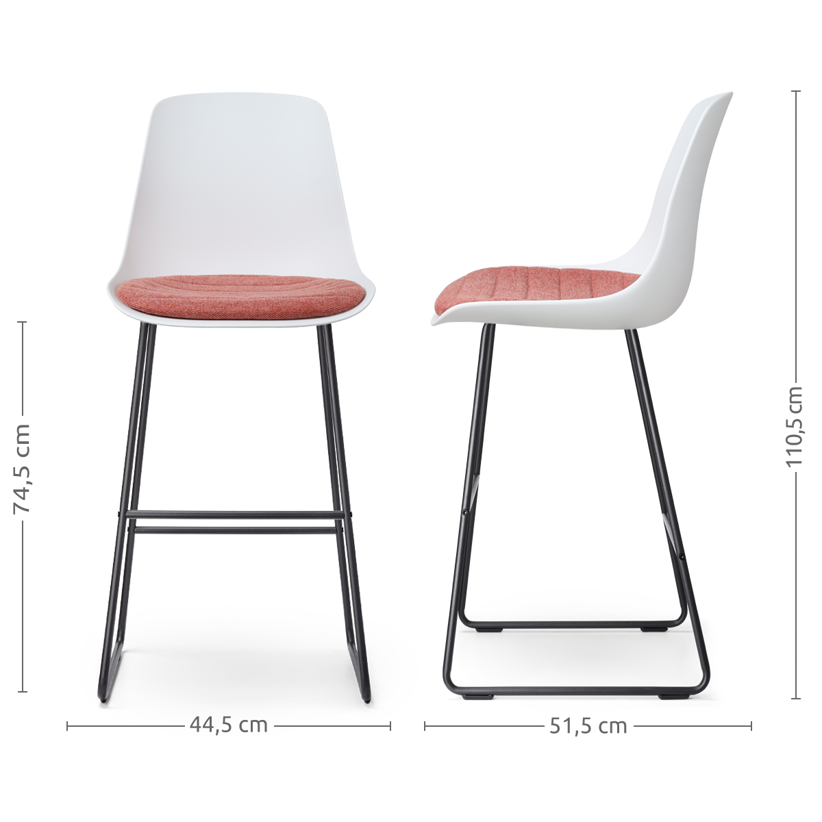 Nino-Liv barkruk wit met terracotta rood zitkussen - zwart onderstel - 75 cm